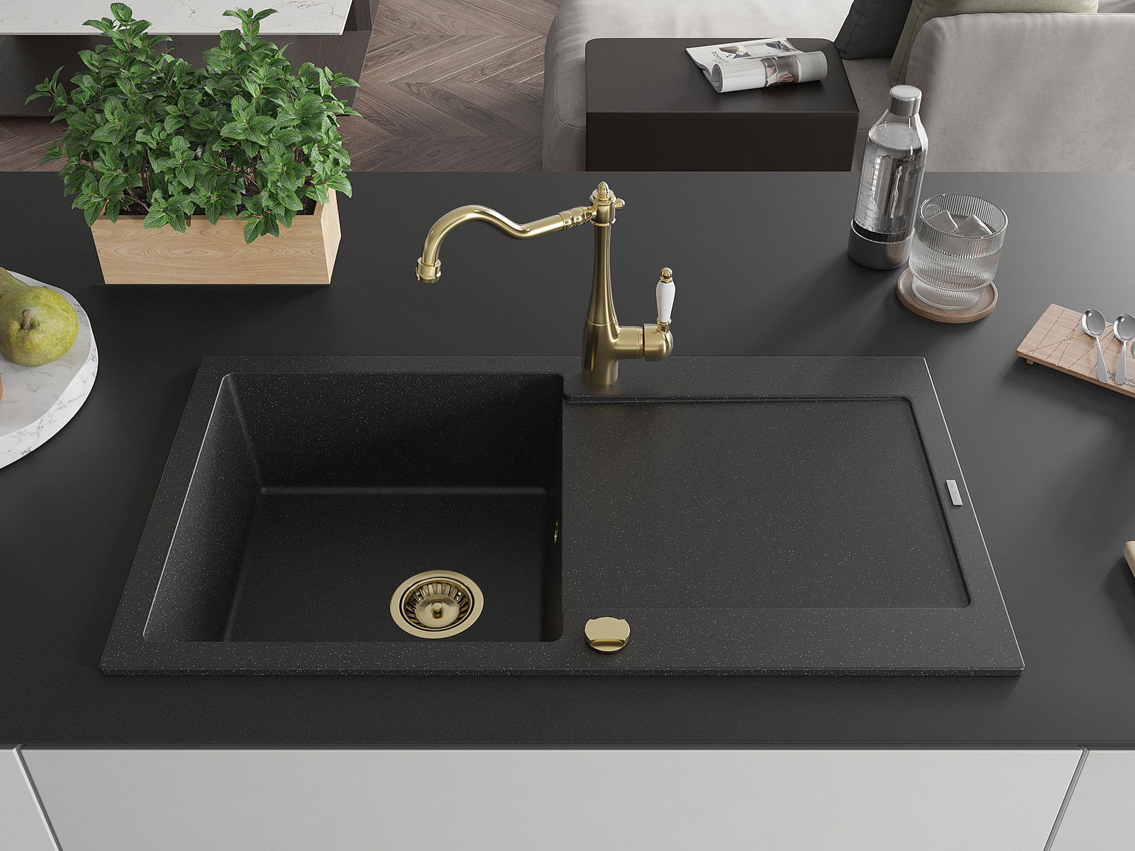 L'évier est fabriqué en granit de haute qualité. Il constitue un complément élégant et surtout pratique pour toute cuisine, quel que soit son style. La qualité et la durabilité du granit garantissent de nombreuses années d'utilisation.