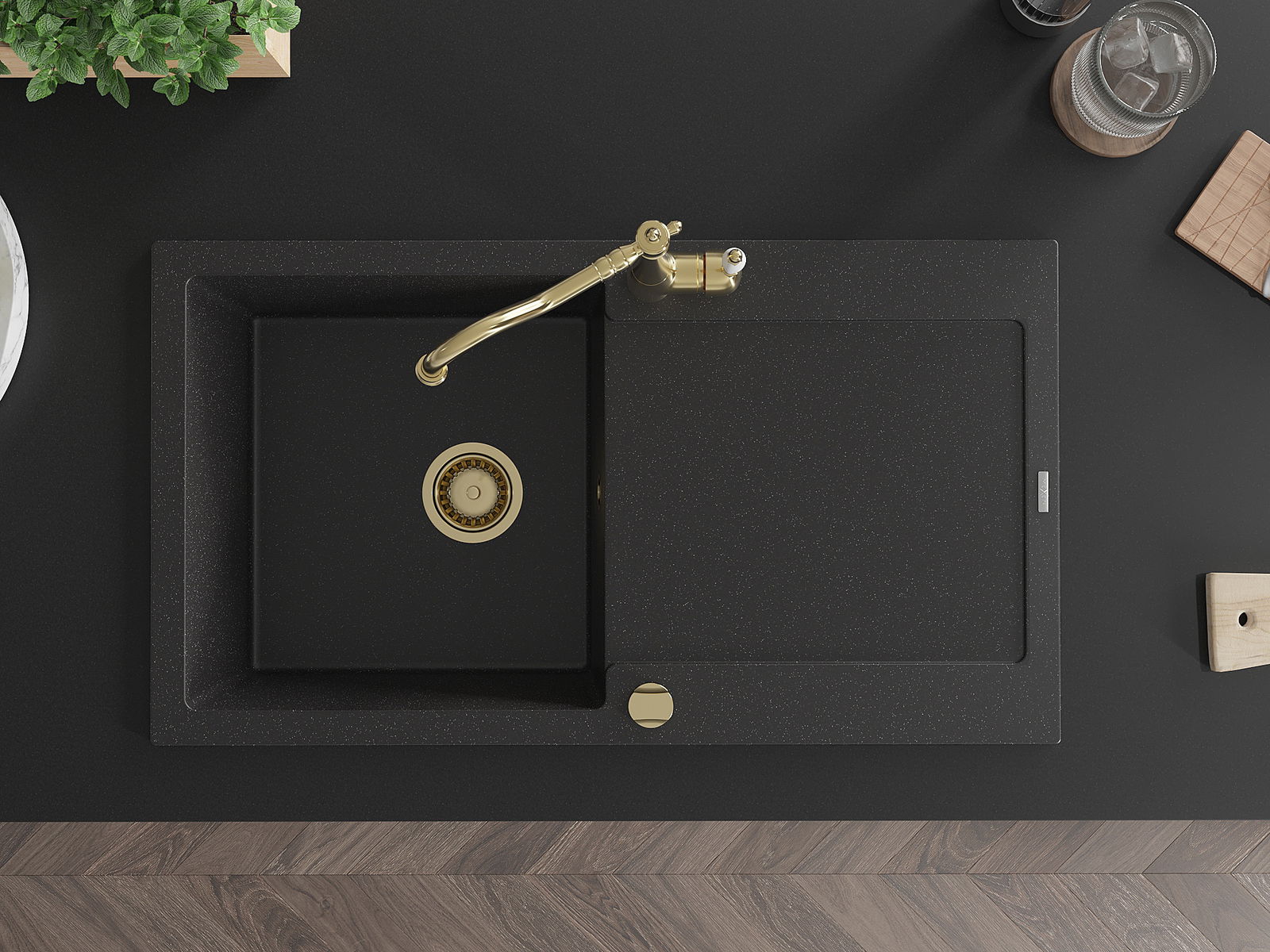 La surface de l'évier est très bien trempée et se distingue par une résistance exceptionnelle aux dommages mécaniques et aux rayures. Ce matériau durable vous permettra de profiter de son bel aspect pendant de nombreuses années.