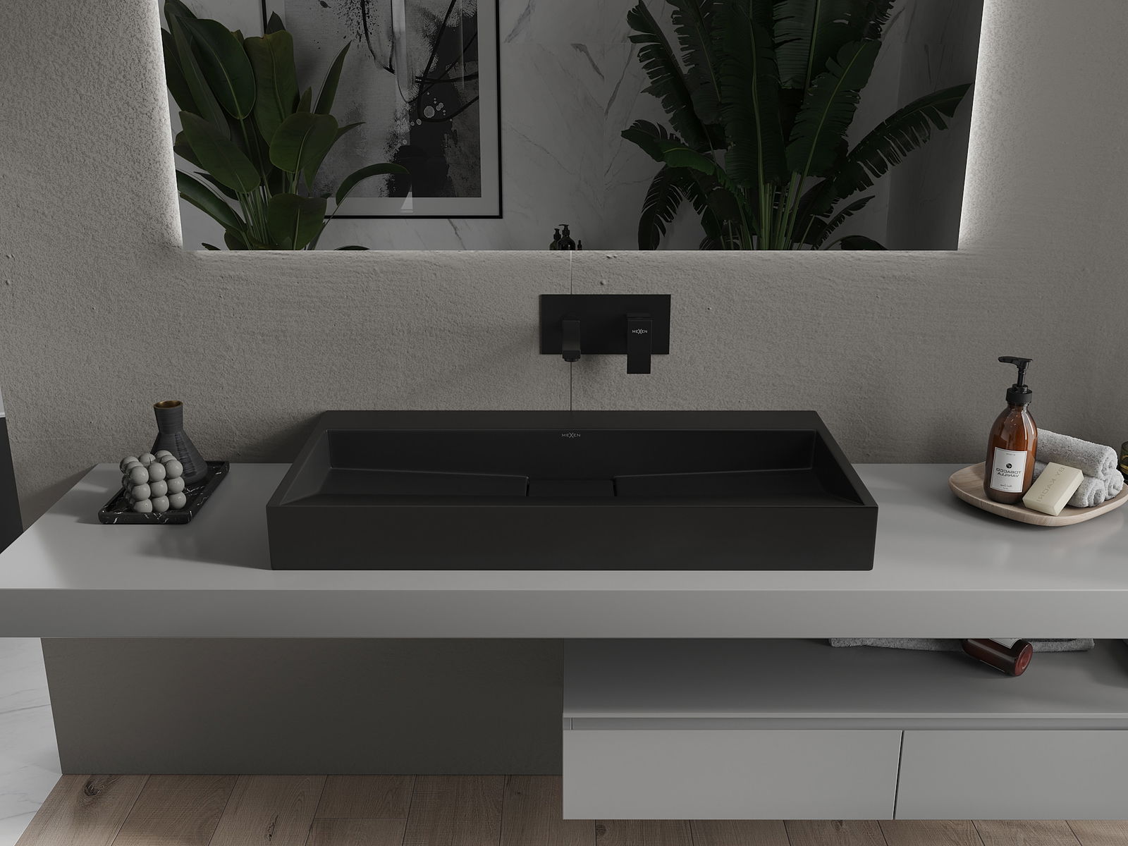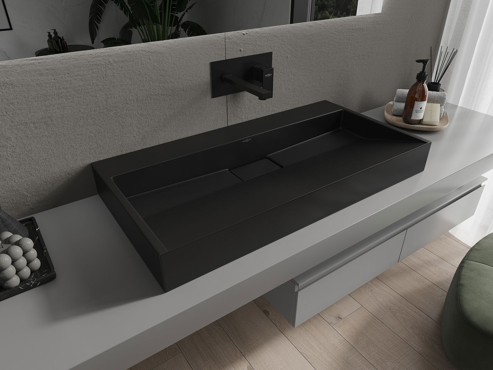 Mexen Ava lavabo à poser en conglomérat B/O 90 x 46 cm, noir - 23019070