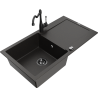 Mexen Leo évier en granit 1-bac avec égouttoir et mitigeur de cuisine Carla, noir moucheté - 6501-76-670700-70-B