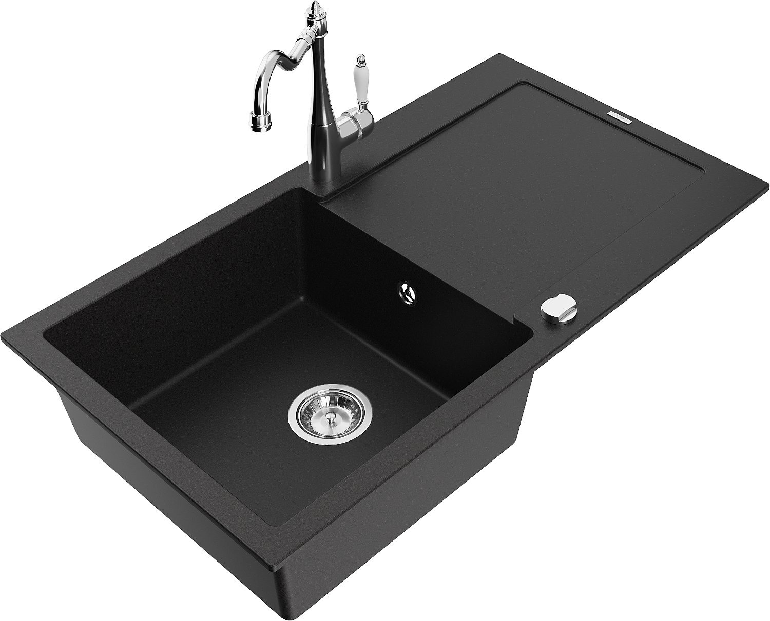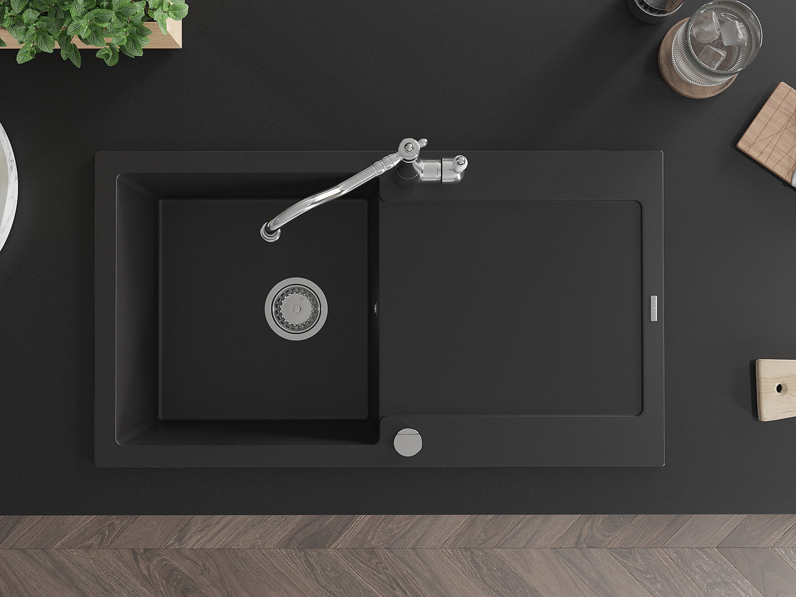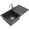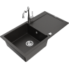Mexen Leo évier en granit 1 bac avec égouttoir et mitigeur de cuisine Carla, noir - 6501-77-670700-00