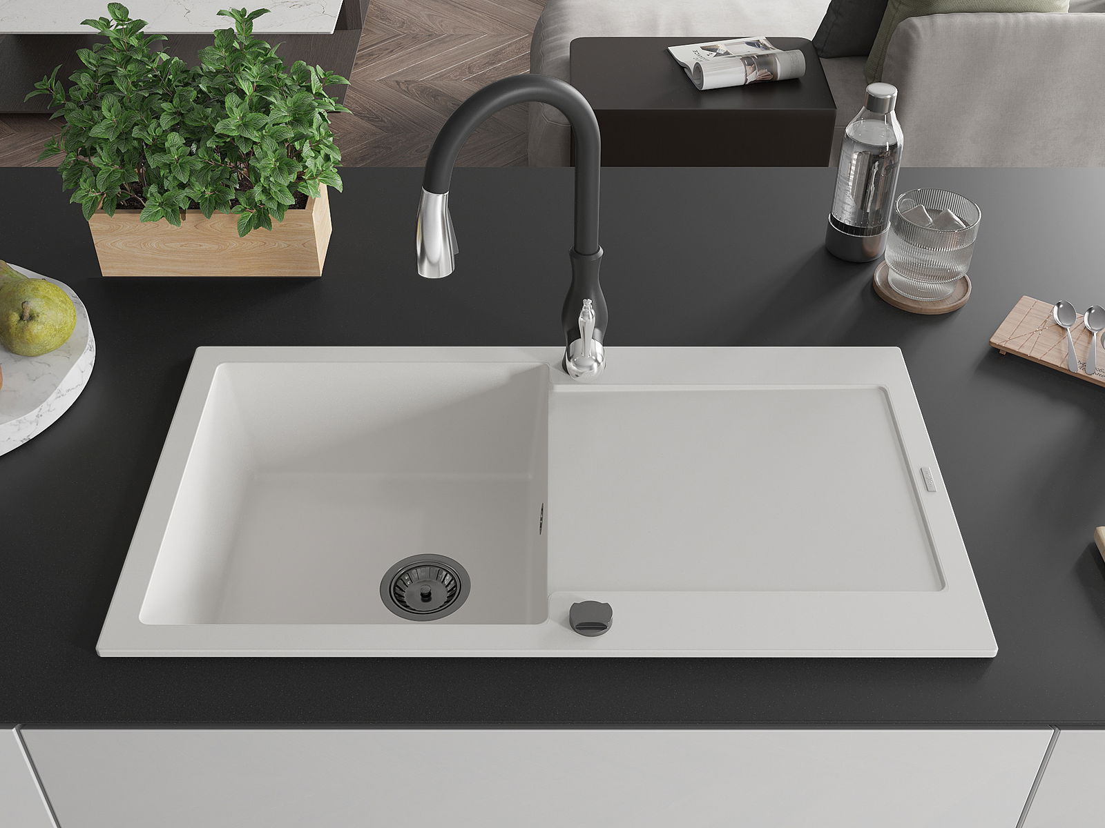L'évier est fabriqué en granit de haute qualité. Il constitue un complément élégant et surtout pratique pour toute cuisine, quel que soit son style. La qualité et la durabilité du granit garantissent de nombreuses années d'utilisation.