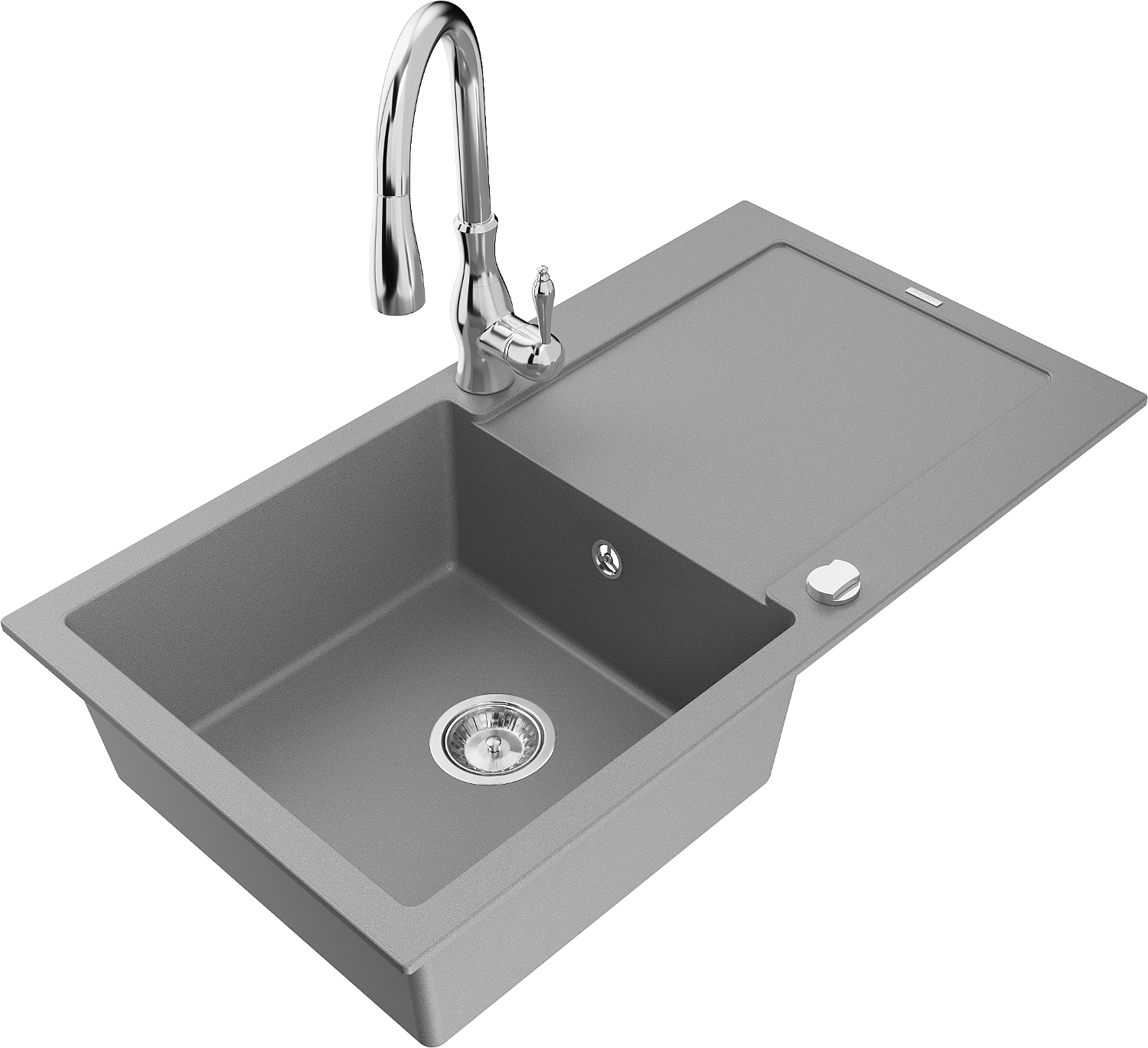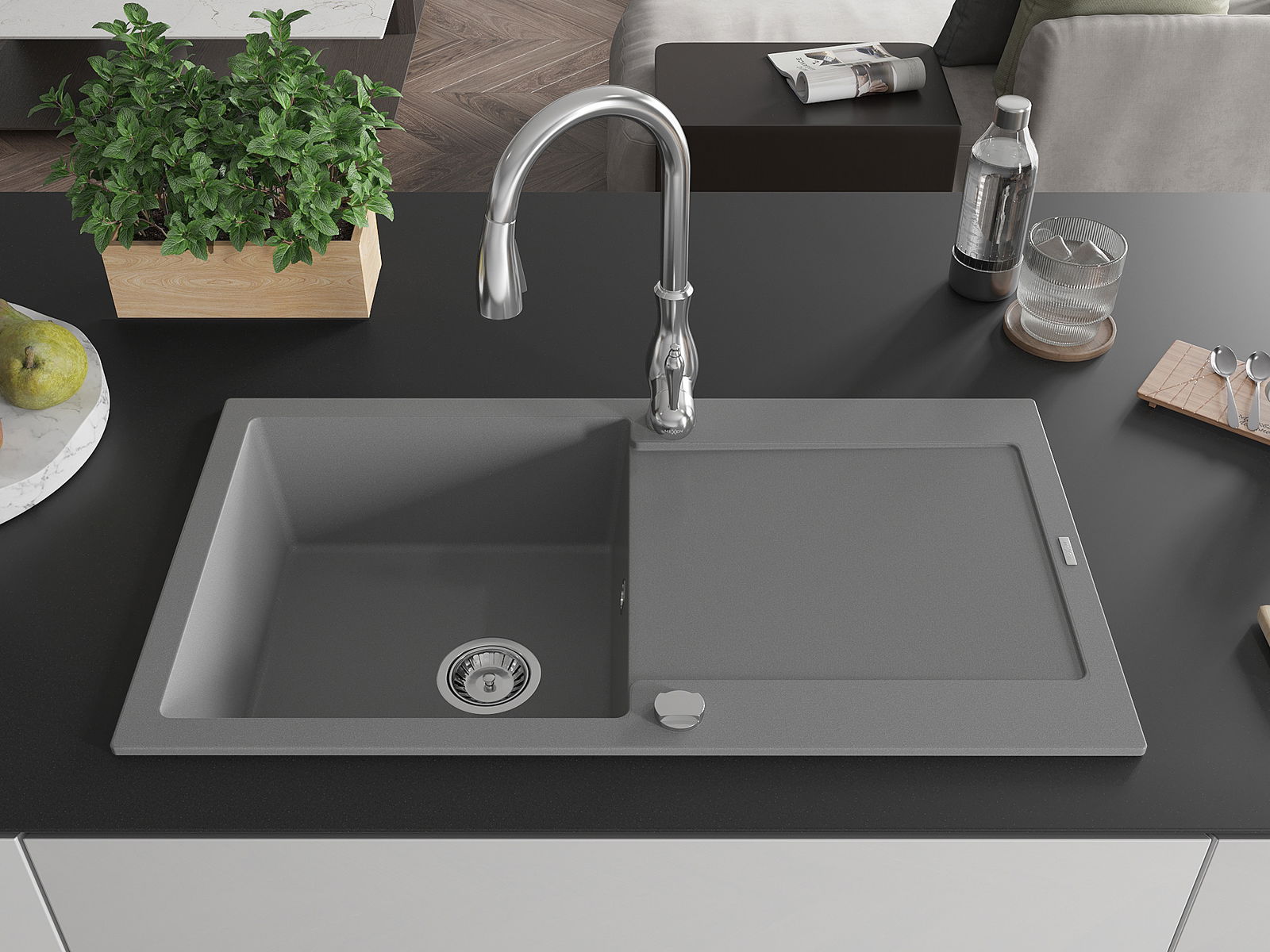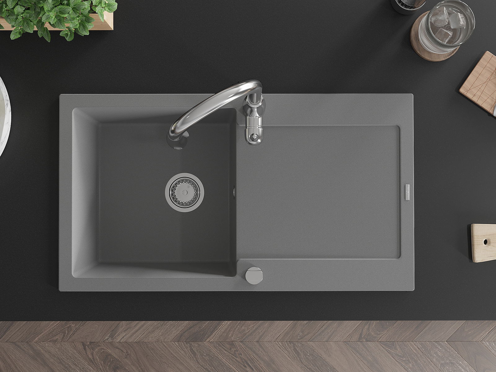 Mexen Leo évier granitique 1 bac avec égouttoir et robinet de cuisine Savita, gris - 6501-71-672601-00