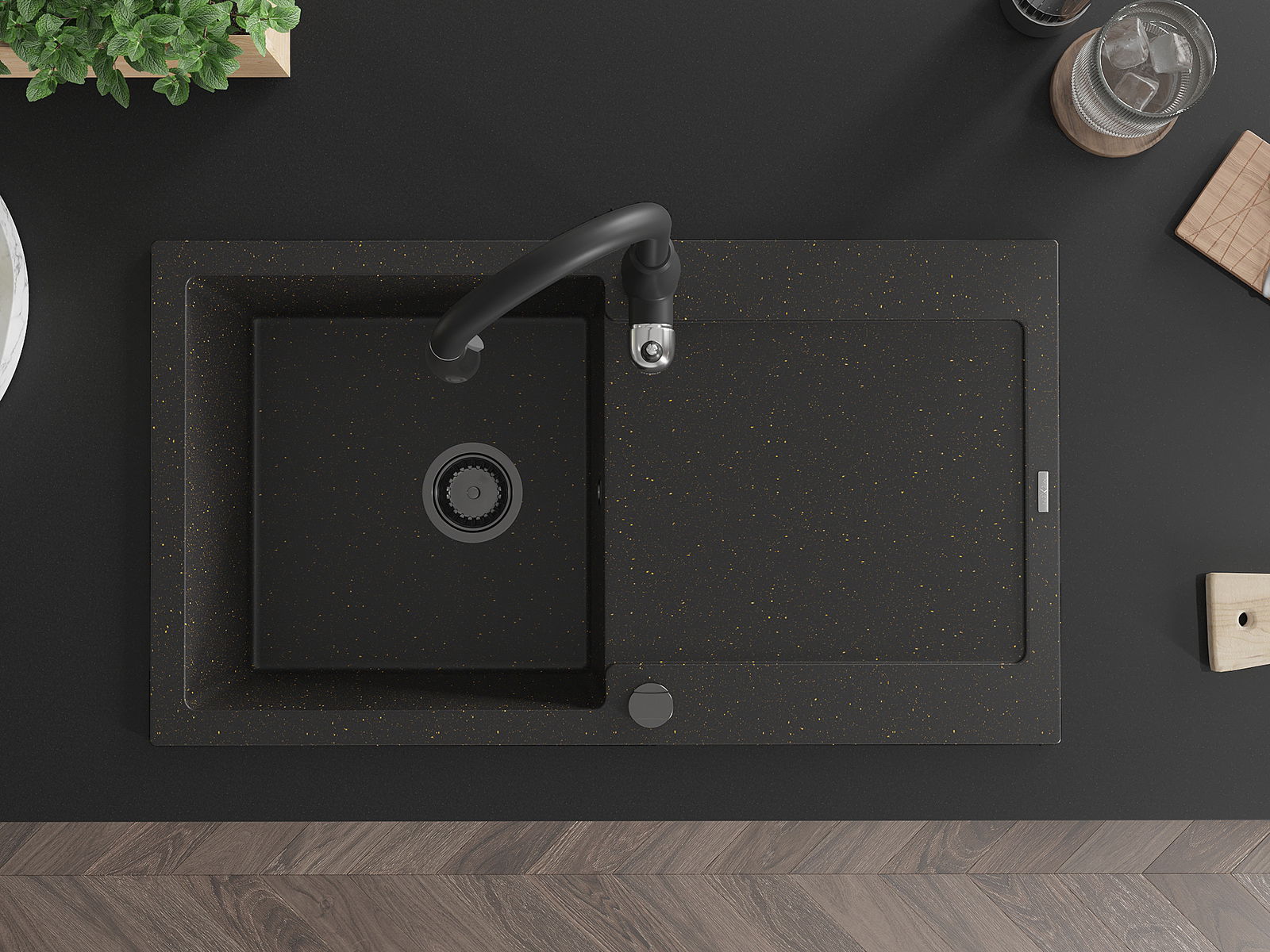 La surface de l'évier est très bien trempée et se distingue par une résistance exceptionnelle aux dommages mécaniques et aux rayures. Ce matériau durable vous permettra de profiter de son bel aspect pendant de nombreuses années.