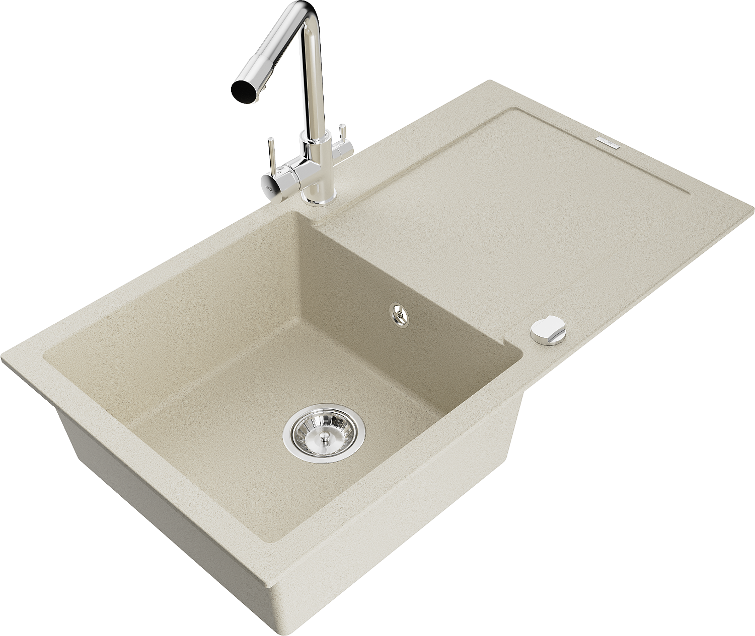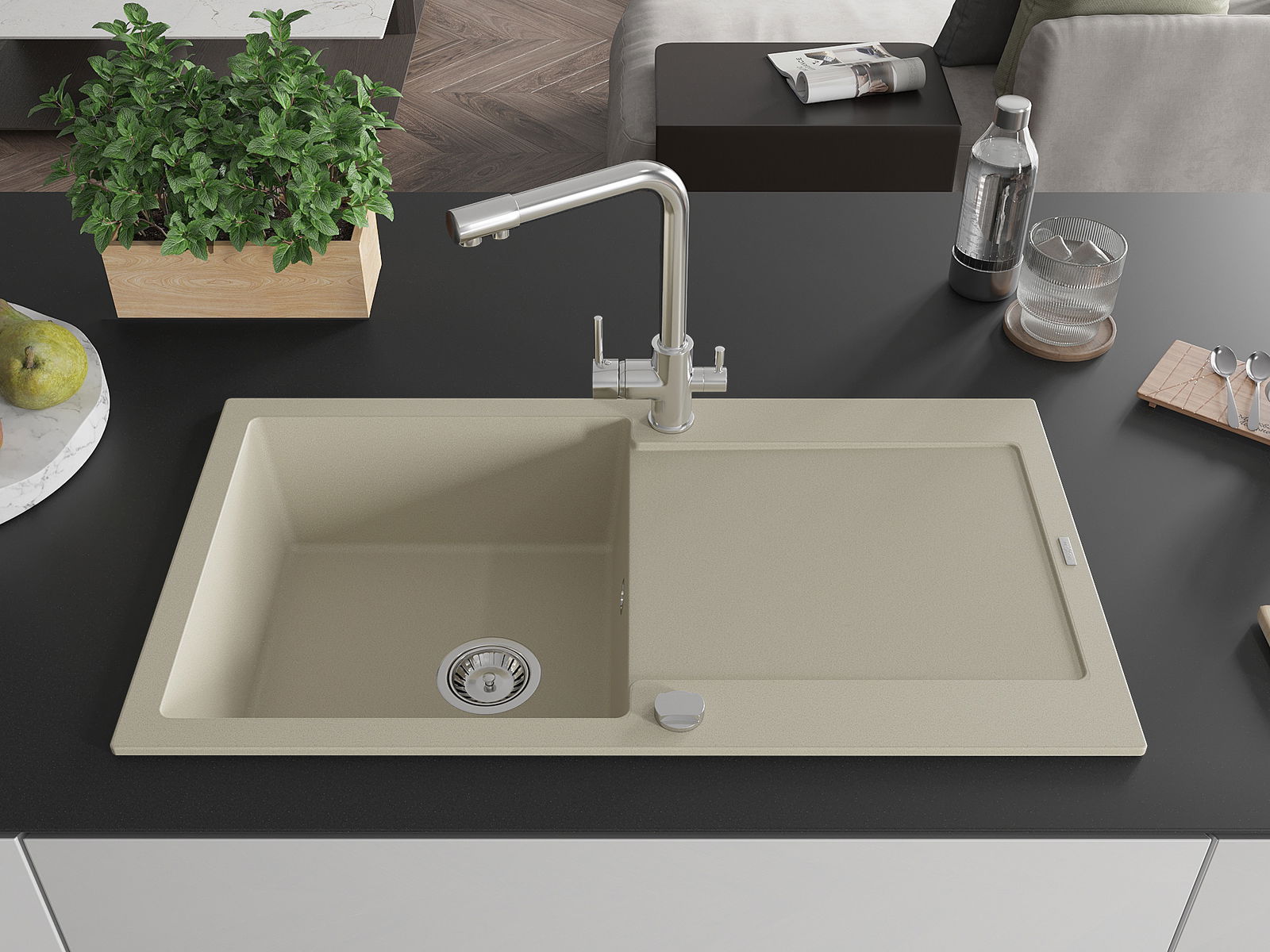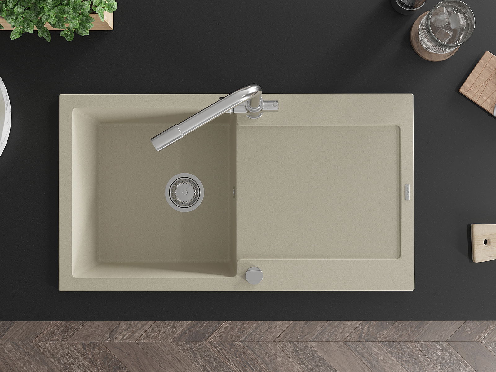 Mexen Leo évier de cuisine en granit à 1 bac avec égouttoir et robinet de cuisine Duero, beige- 6501-69-671600-00