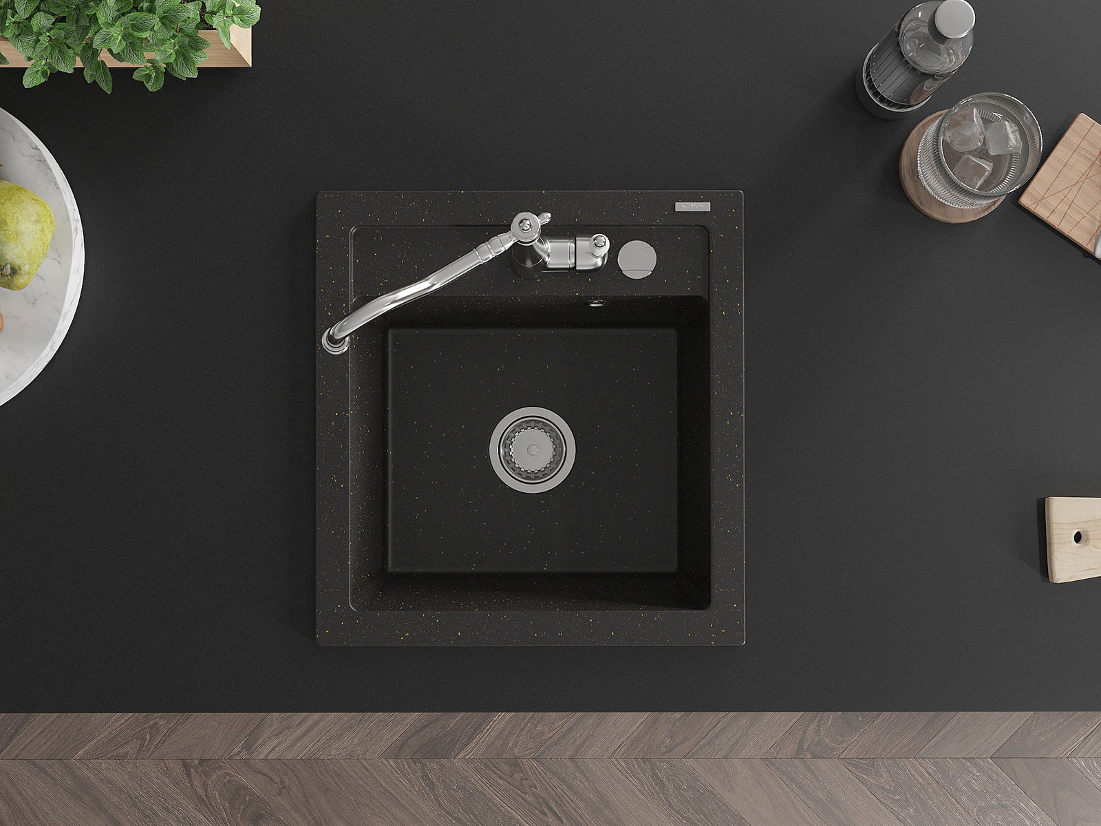 L'évier est doté d'un trou fraisé de 35 mm de diamètre pour l'auto-perçage. Il peut notamment accueillir un distributeur de liquide, ce qui éliminera les bouteilles en plastique dans la cuisine et lui apportera une finition élégante.