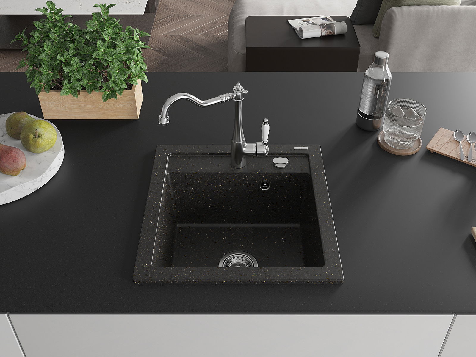 La surface de l'évier est très bien trempée et se distingue par une résistance exceptionnelle aux dommages mécaniques et aux rayures. Ce matériau durable vous permettra de profiter de son bel aspect pendant de nombreuses années.