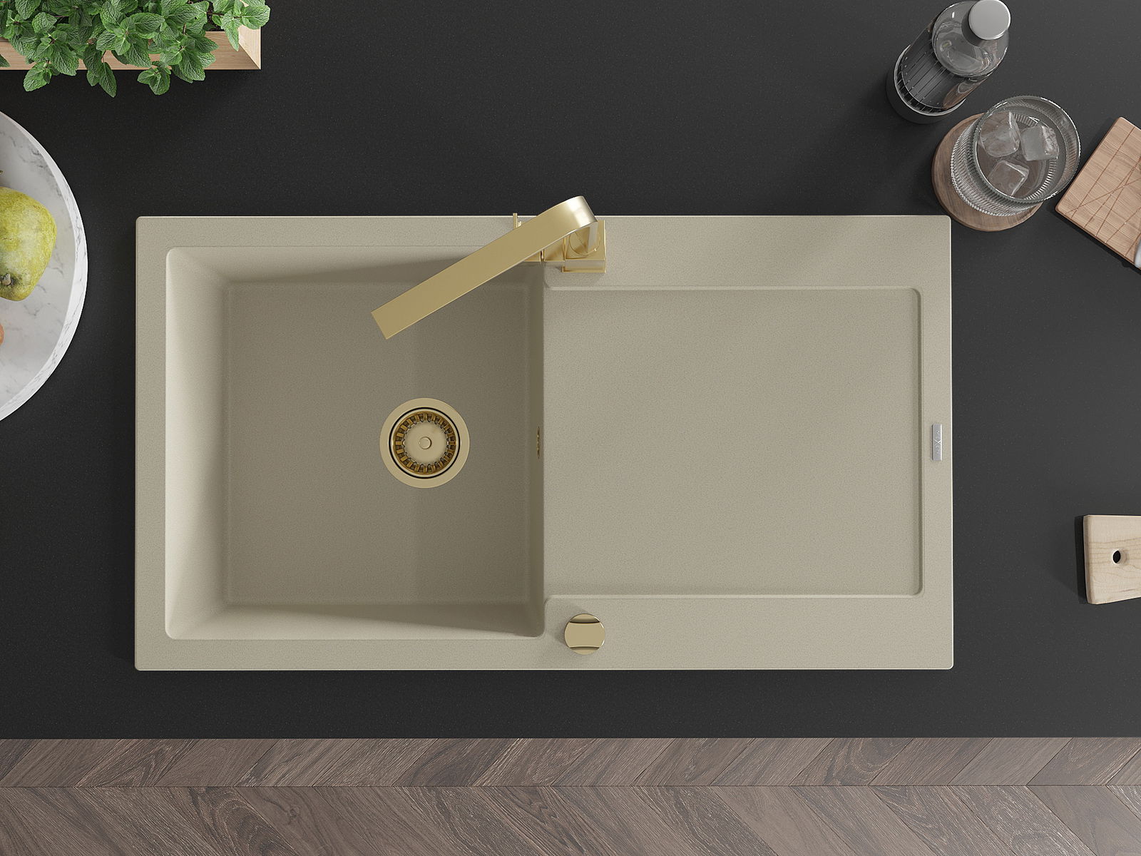 Mexen Leo évier en granit 1 bac avec égouttoir et robinet de cuisine Rita, beige - 6501-69-670300-50