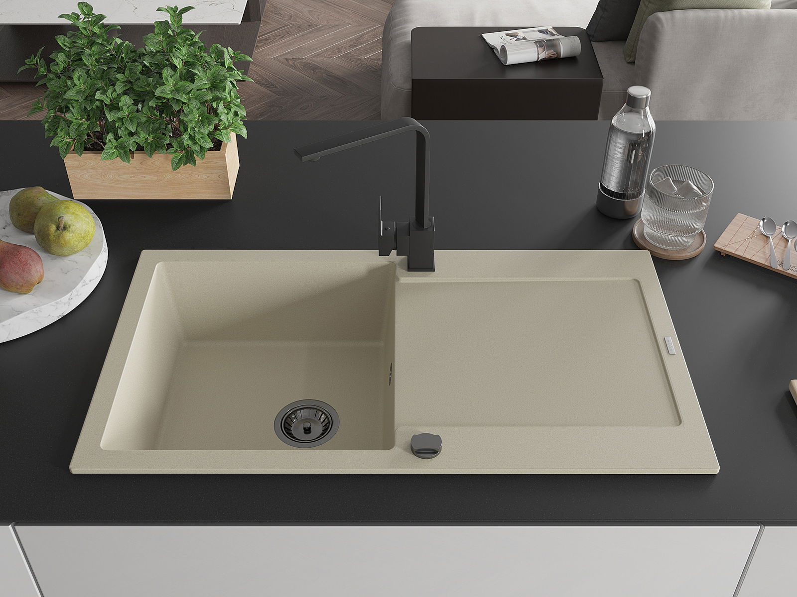 L'évier a été fabriqué en granit de haute qualité. Il constitue un complément élégant et surtout pratique pour chaque cuisine, quel que soit son style. La haute qualité et la durabilité du granit garantissent une utilisation de plusieurs années.