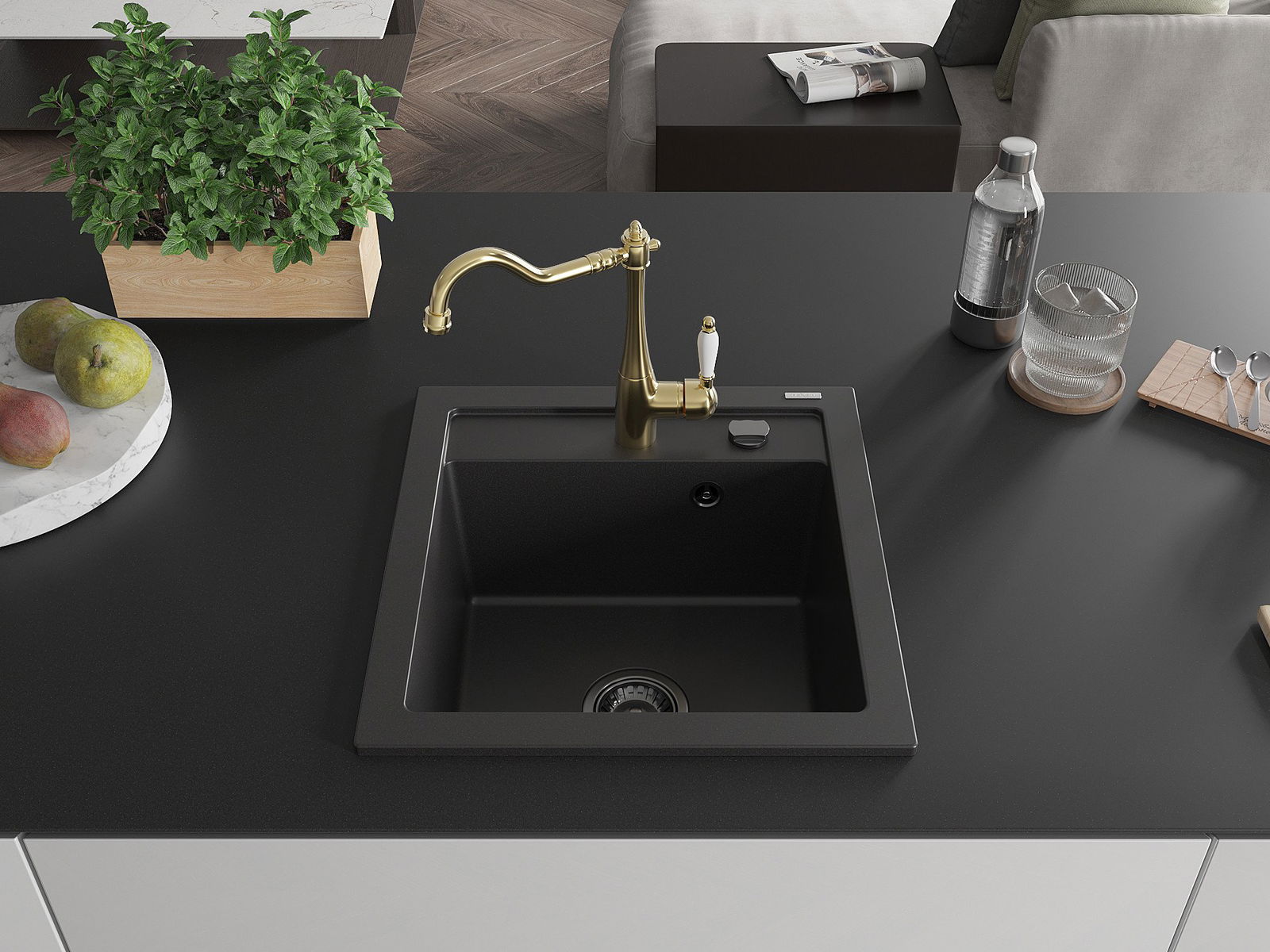 L'évier est doté d'un trou fraisé de 35 mm de diamètre pour l'auto-perçage. Il peut notamment accueillir un distributeur de liquide, ce qui éliminera les bouteilles en plastique dans la cuisine et lui apportera une finition élégante.