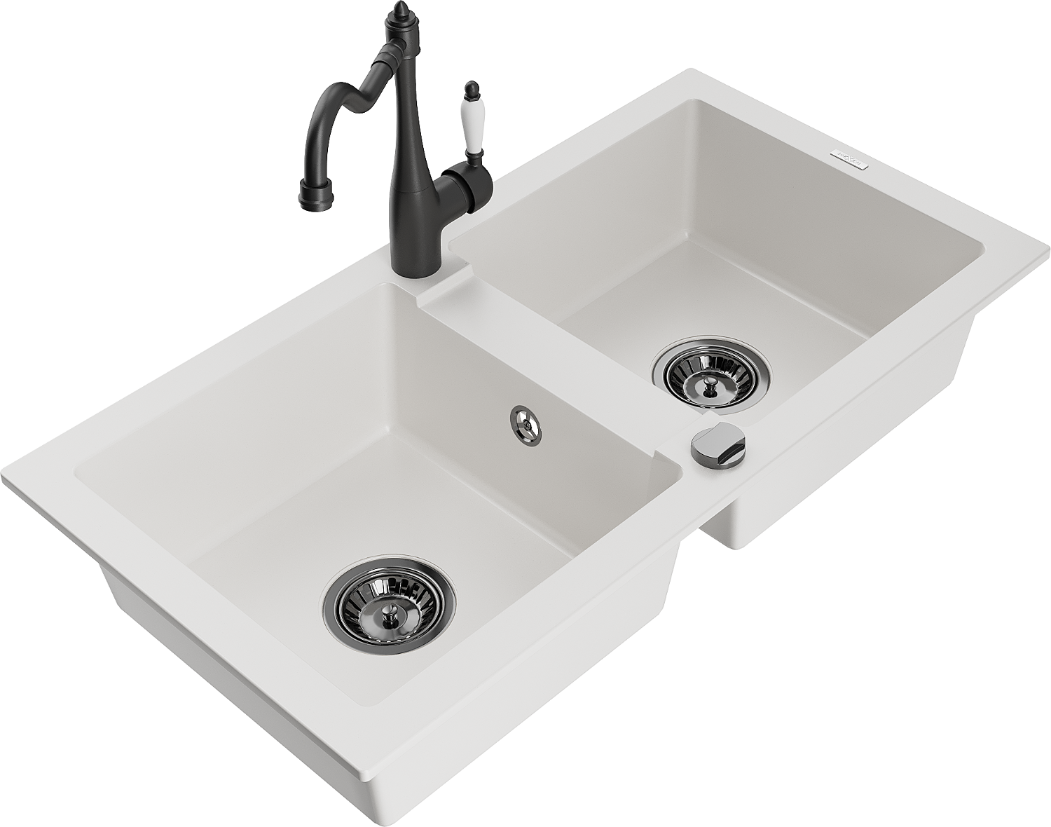 Mexen Mario évier de cuisine en granit à 2 cuves avec robinet de cuisine Carla, blanc - 6504-20-670700-70