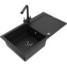 Mexen Leo évier en granit 1 bac avec égouttoir et robinet de cuisine Duero, noir/argent métallisé - 6501-73-671600-70-B