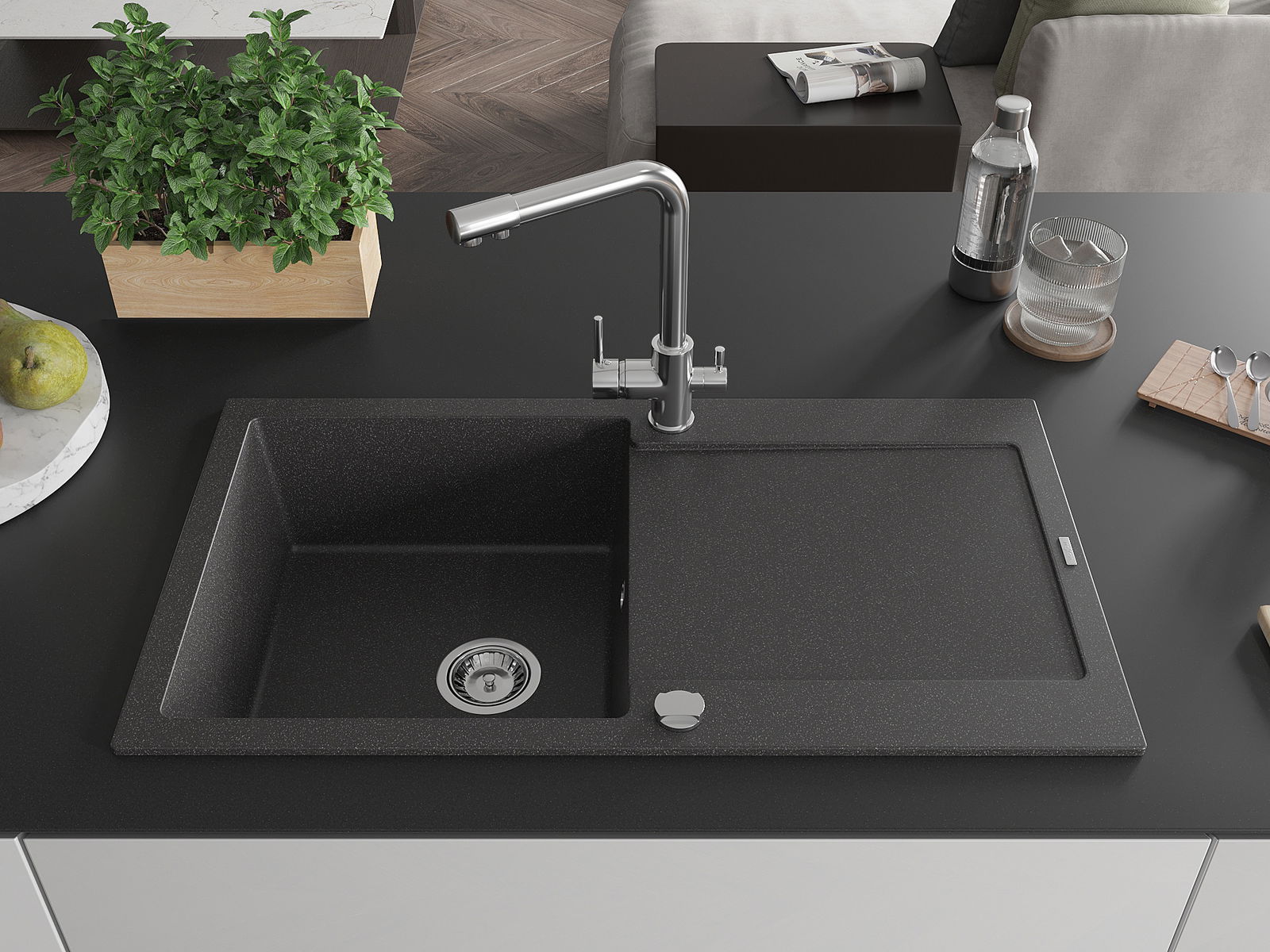 L'évier est fabriqué en granit de haute qualité. Il constitue un complément élégant et surtout pratique pour toute cuisine, quel que soit son style. La qualité et la durabilité du granit garantissent de nombreuses années d'utilisation.