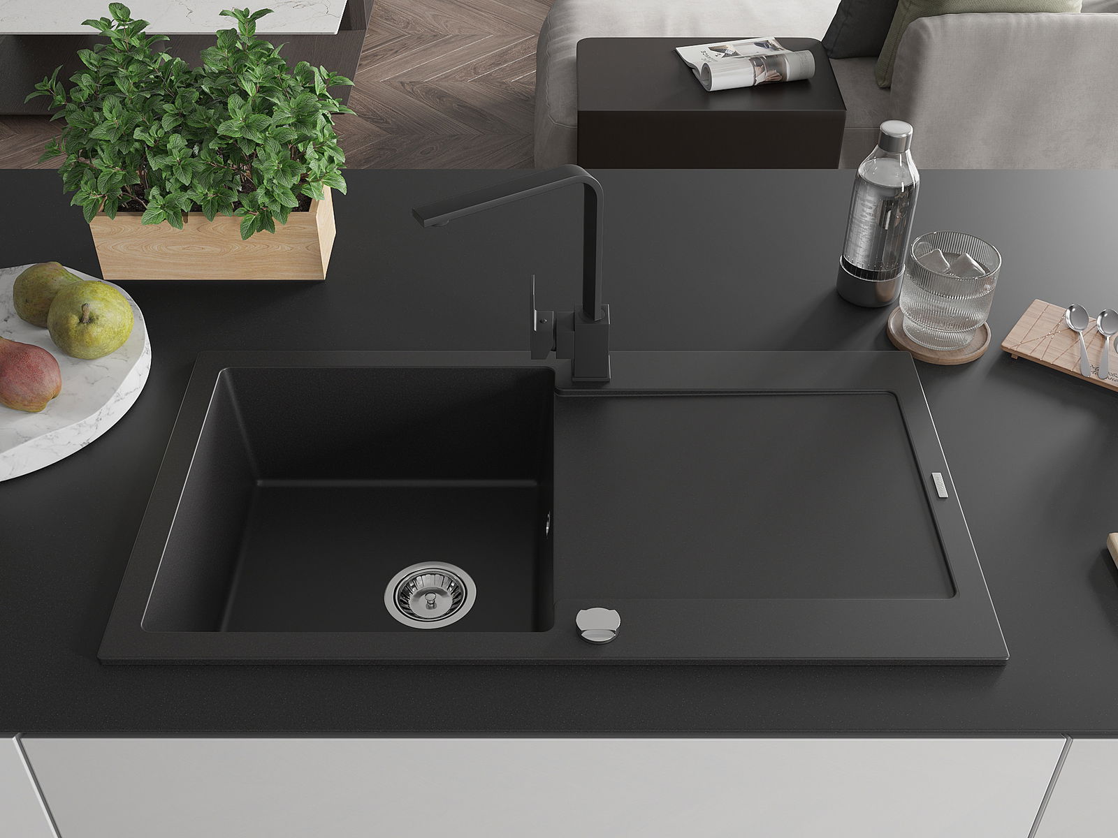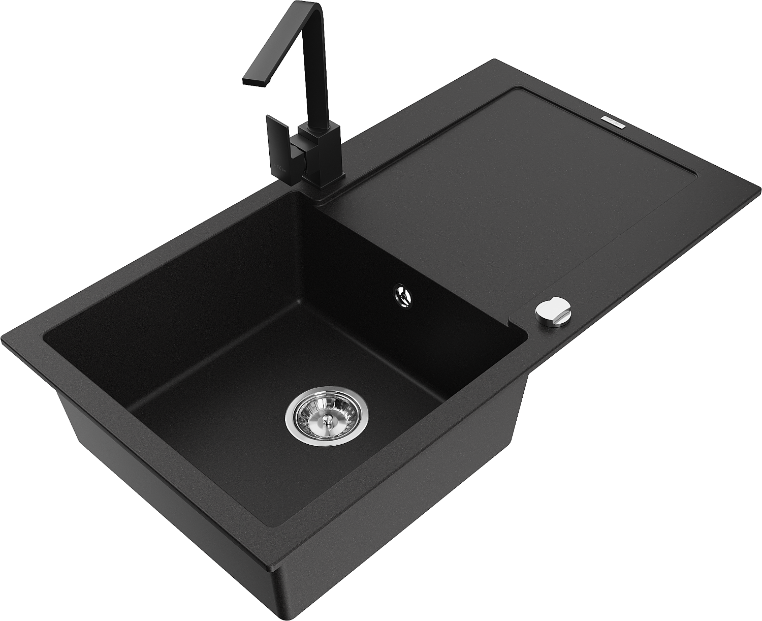 Mexen Leo évier en granit à 1 bac avec égouttoir et robinet de cuisine Rita, noir - 6501-77-670300-70