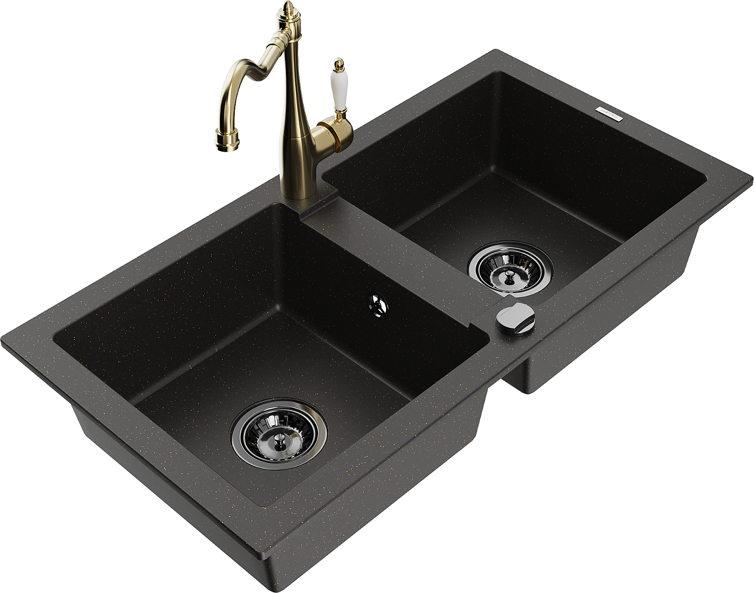 Mexen Mario évier en granit à 2 bacs avec robinet de cuisine Carla, noir/or métallisé - 6504-75-670700-50-B