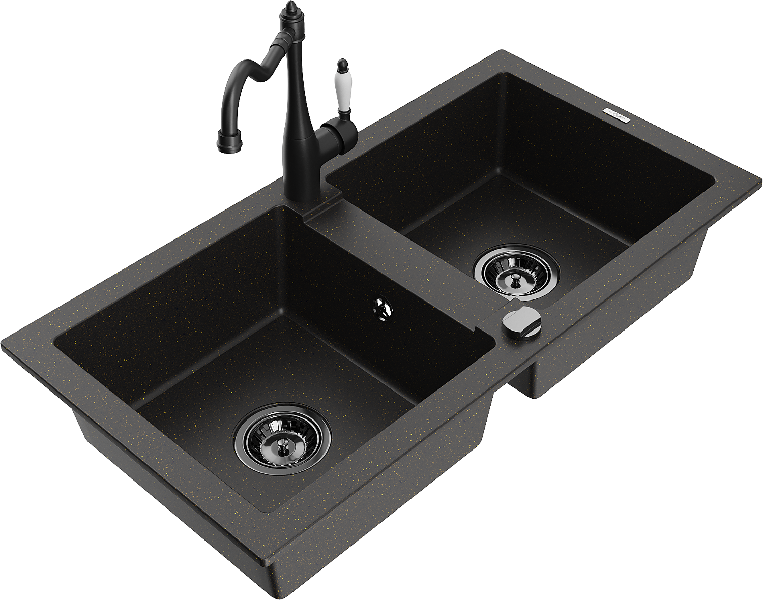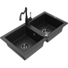 Mexen Mario évier de cuisine en granit à 2 bacs avec robinet de cuisine Carla, noir/or métallique - 6504-75-670700-70-B