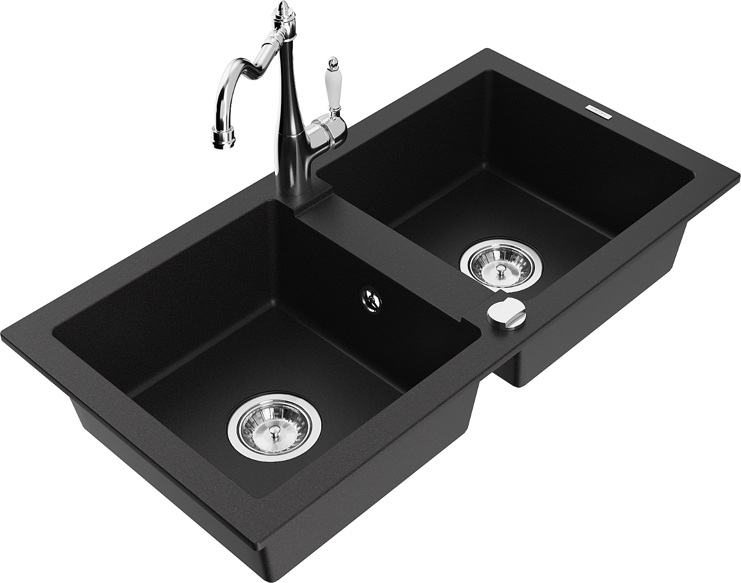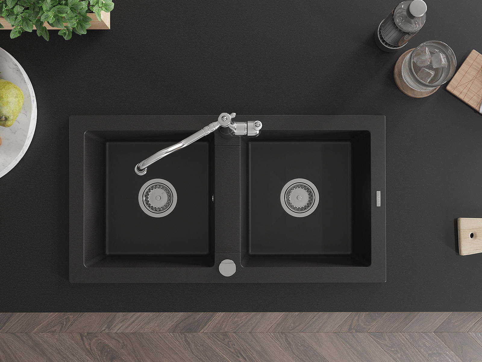 Mexen Mario évier en granit 2 bacs avec mitigeur cuisine Carla, noir - 6504-77-670700-00