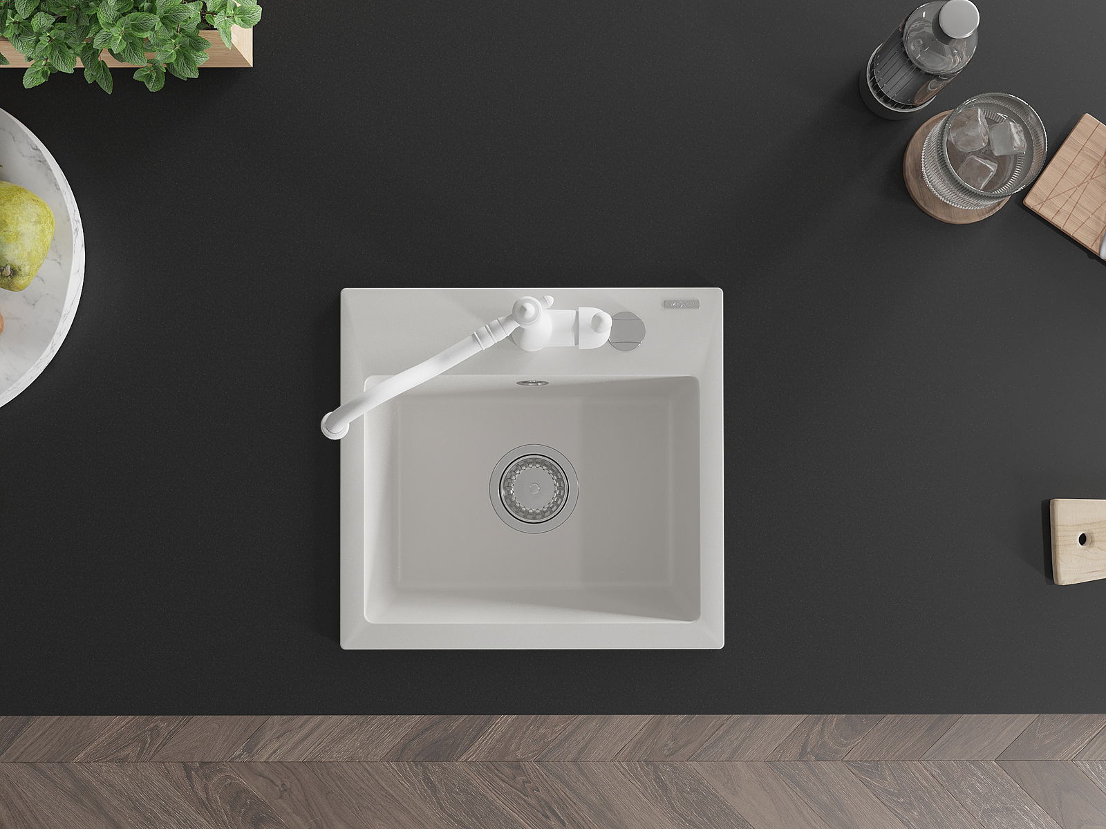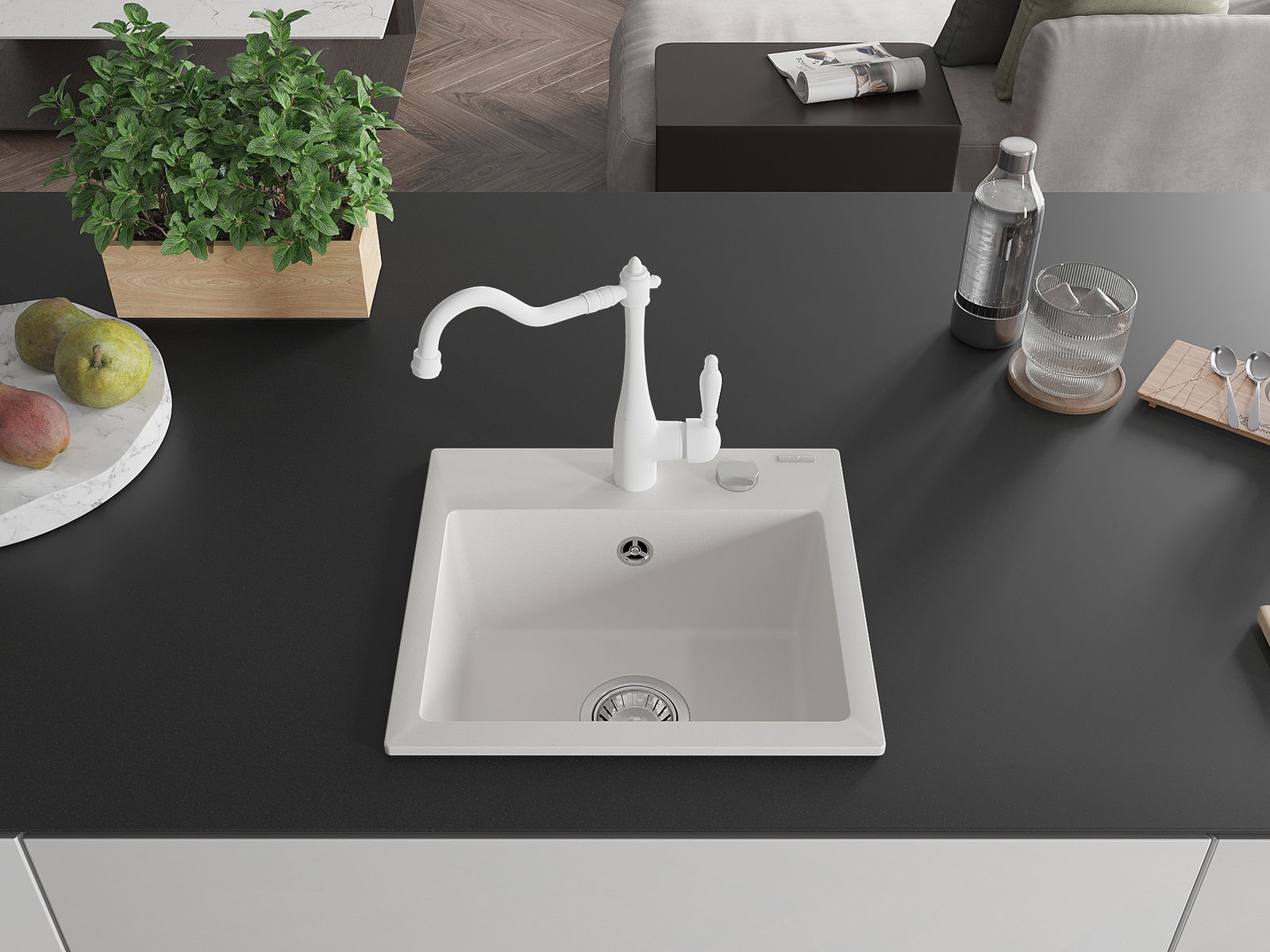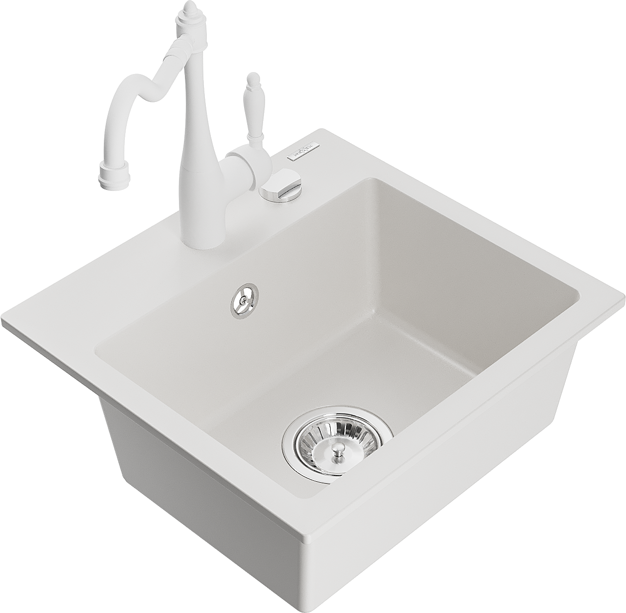 Mexen Milo évier en granit 1 bac avec robinet de cuisine Carla, blanc - 6505-20-670700-20