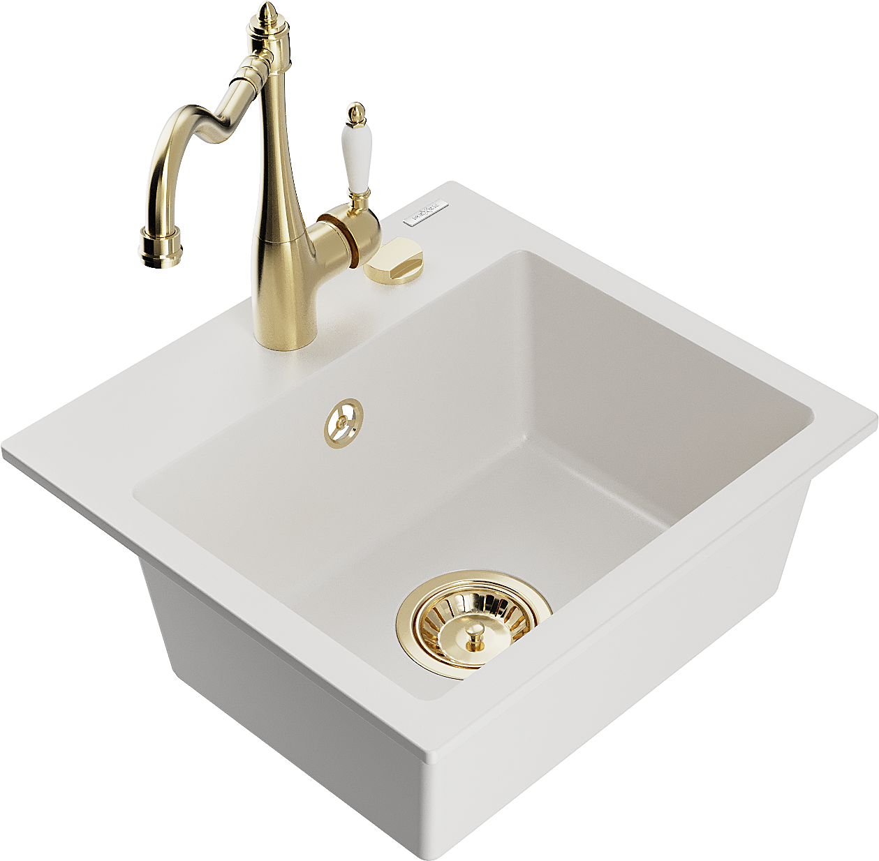 Mexen Milo Évier de cuisine en granit 1 bac avec robinet de cuisine Carla, blanc - 6505-20-670700-50