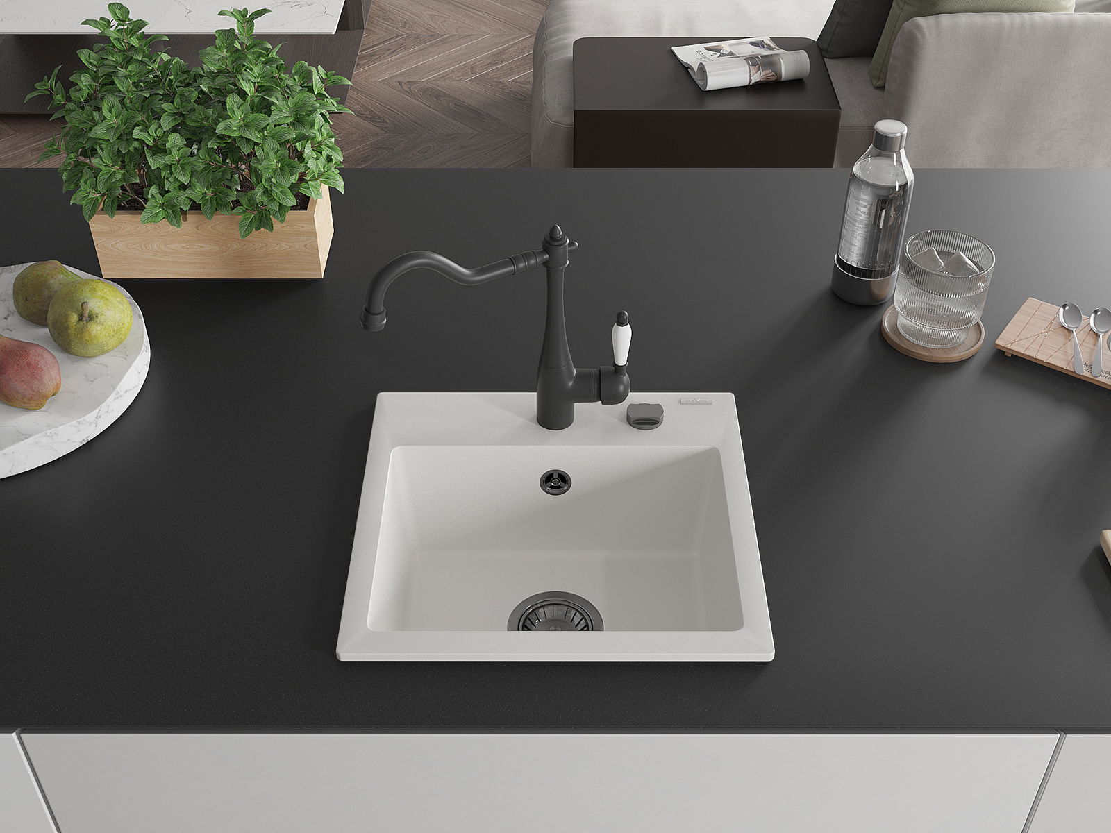 L'évier est fabriqué en granit de haute qualité. Il constitue un complément élégant et surtout pratique pour toute cuisine, quel que soit son style. La qualité et la durabilité du granit garantissent de nombreuses années d'utilisation.