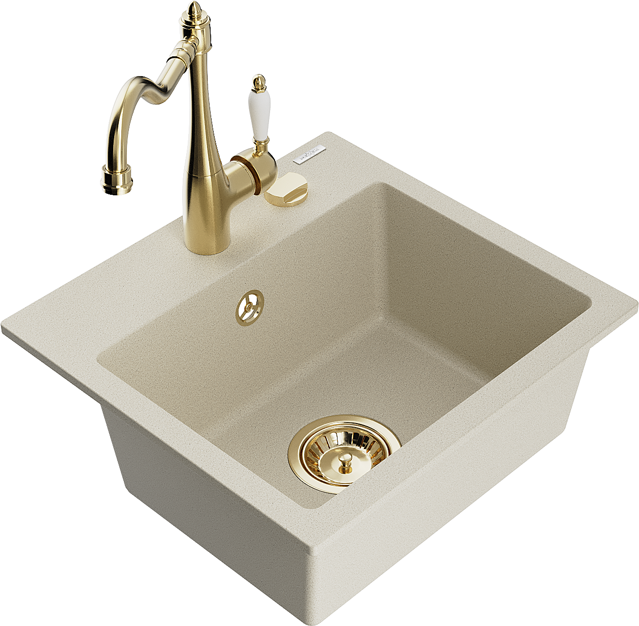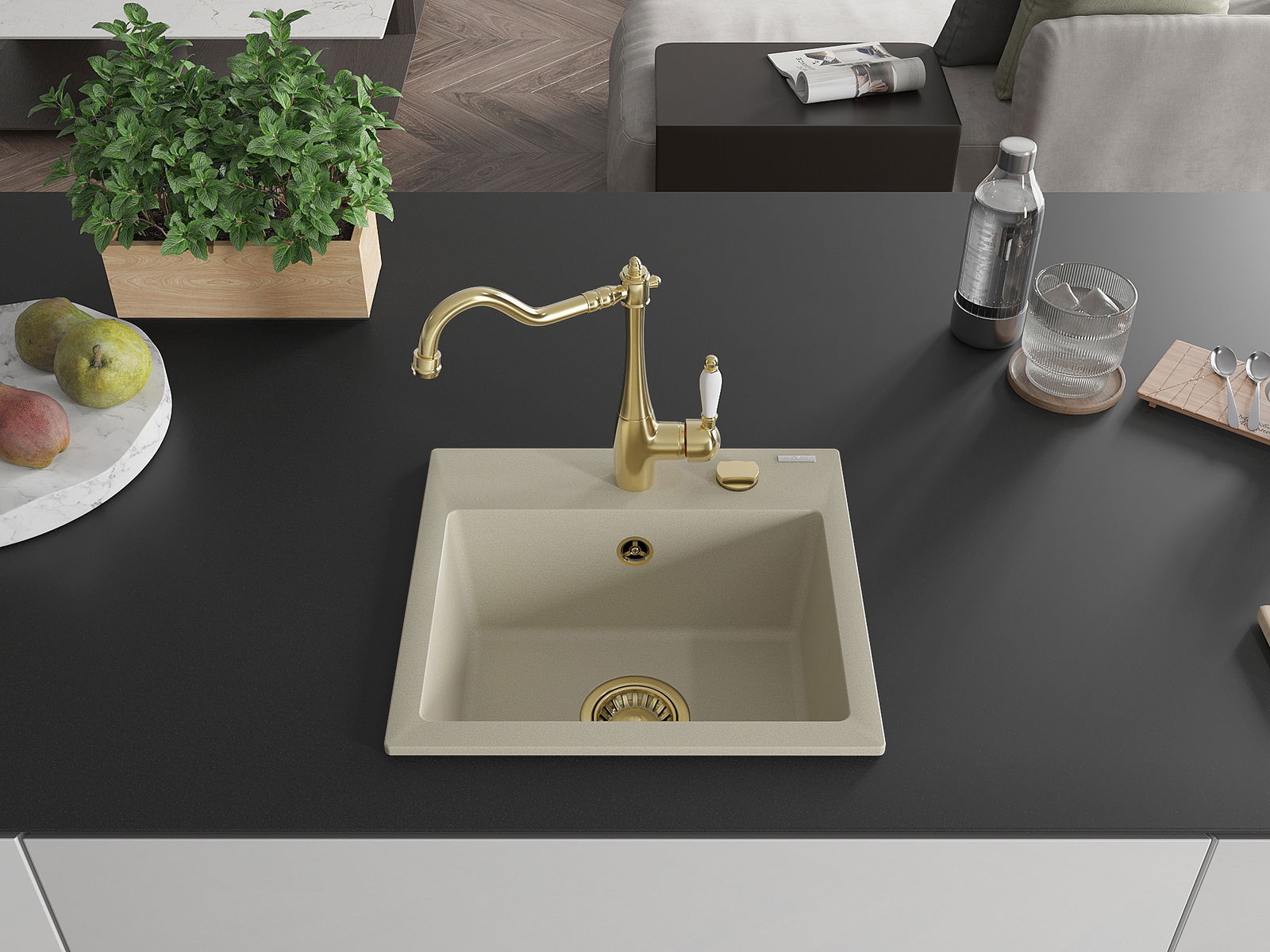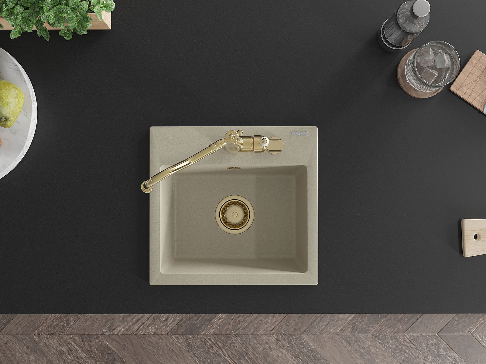 Mexen Milo évier de cuisine en granit 1-bac avec robinet de cuisine Carla, beige - 6505-69-670700-50