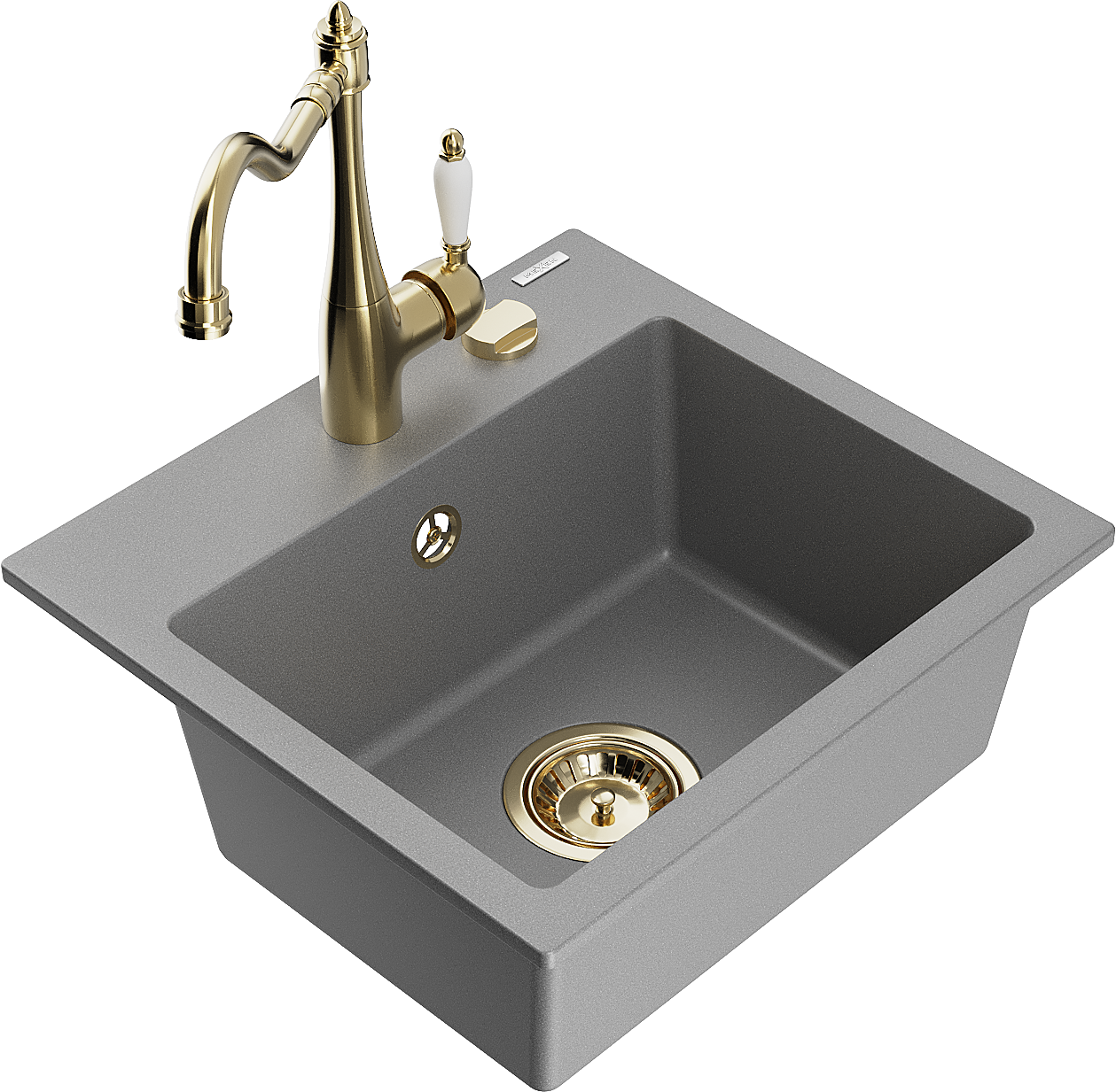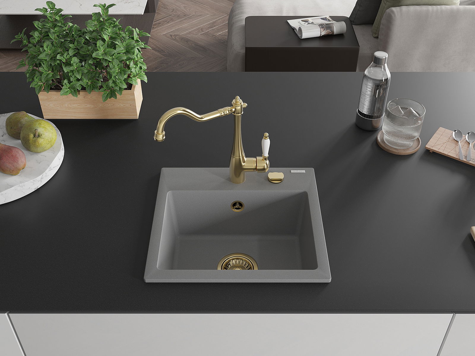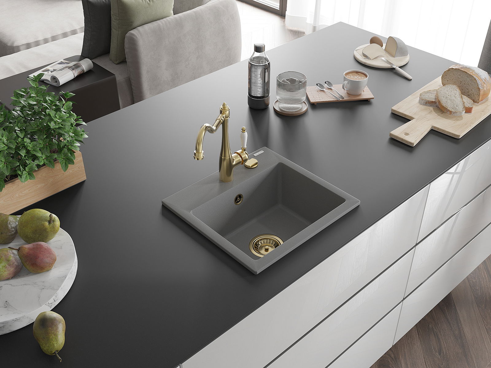 Mexen Milo évier en granit 1 bac avec robinet de cuisine Carla, gris - 6505-71-670700-50