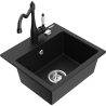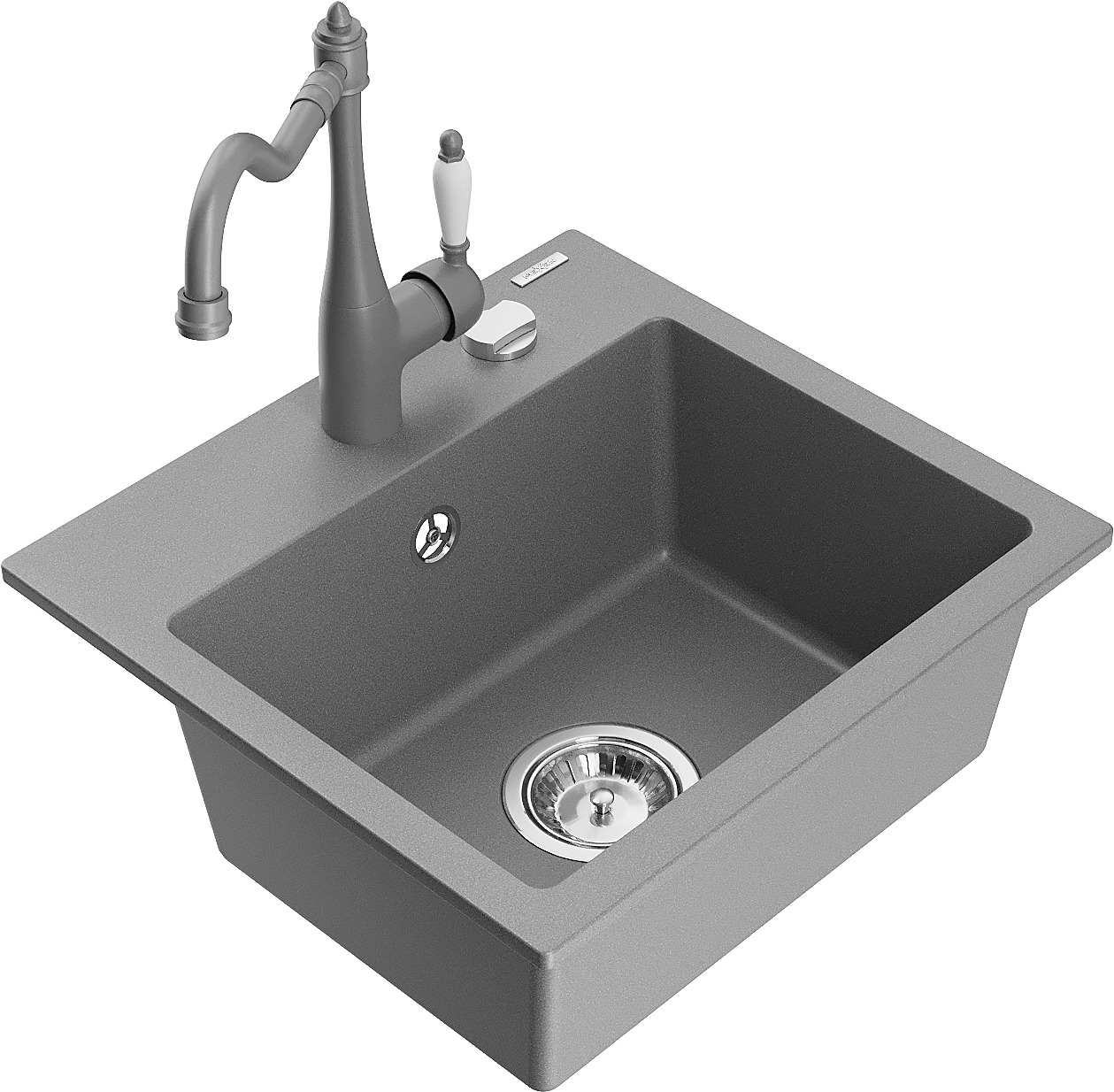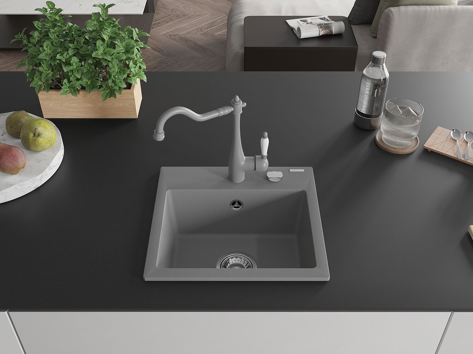 Mexen Milo évier en granit à 1 bac avec robinet de cuisine Carla, gris - 6505-71-670700-71