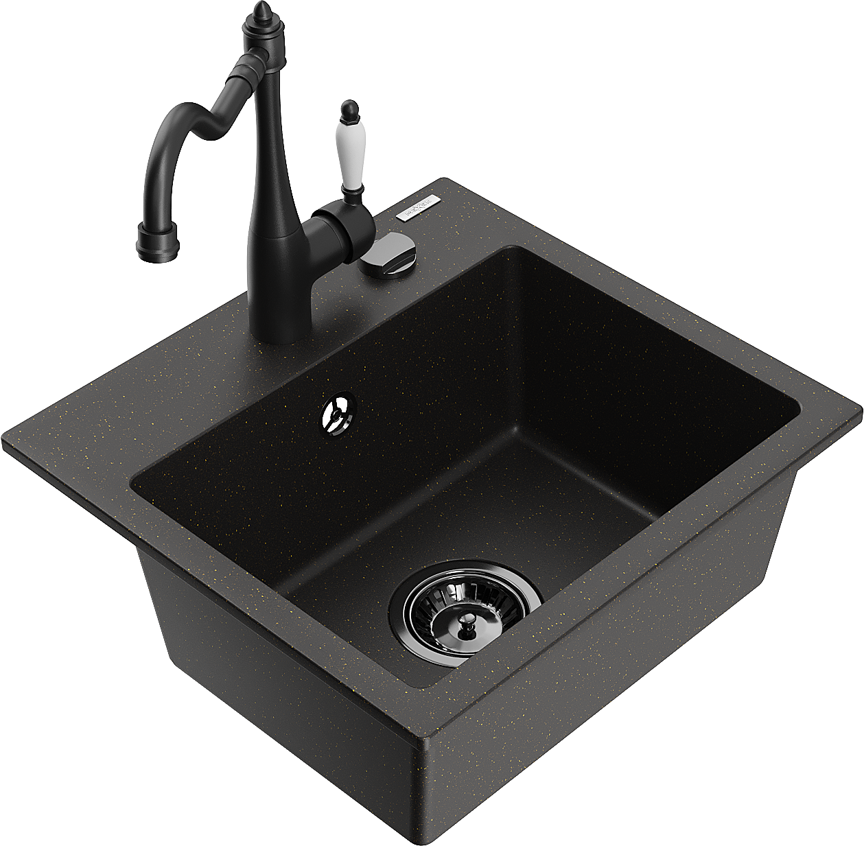 Mexen Milo évier en granit 1 bac avec robinet de cuisine Carla, noir/doré métallisé - 6505-75-670700-70-B