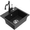 Mexen Milo évier en granit à 1 bac avec robinet de cuisine Carla, noir moucheté - 6505-76-670700-70
