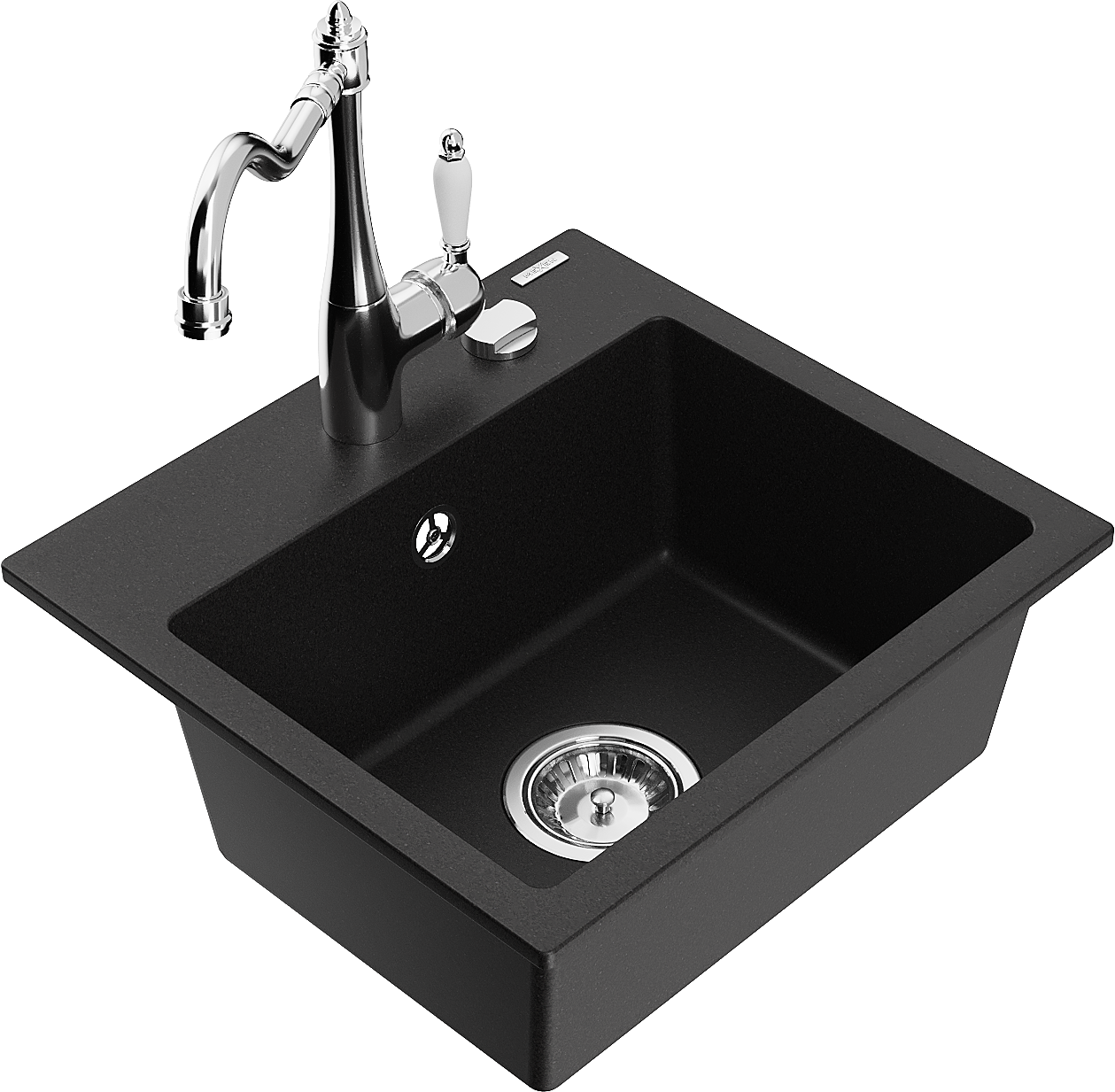 Mexen Milo évier en granit 1 bac avec mitigeur de cuisine Carla, noir - 6505-77-670700-00