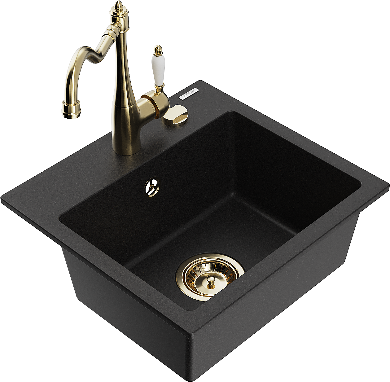 Mexen Milo évier en granit 1 bac avec mitigeur de cuisine Carla, noir - 6505-77-670700-50