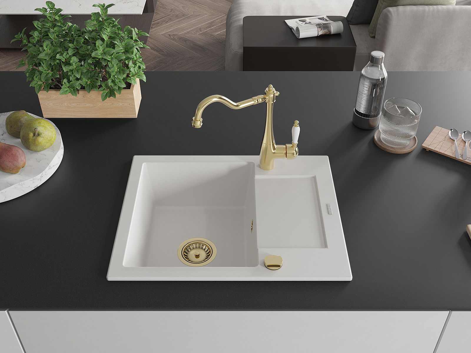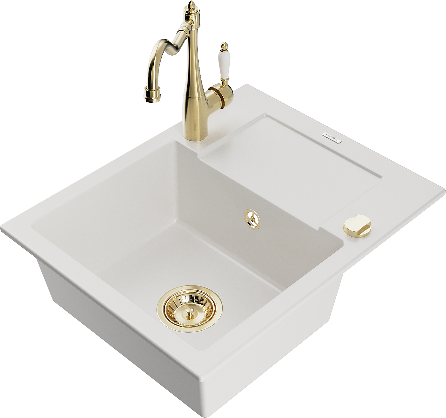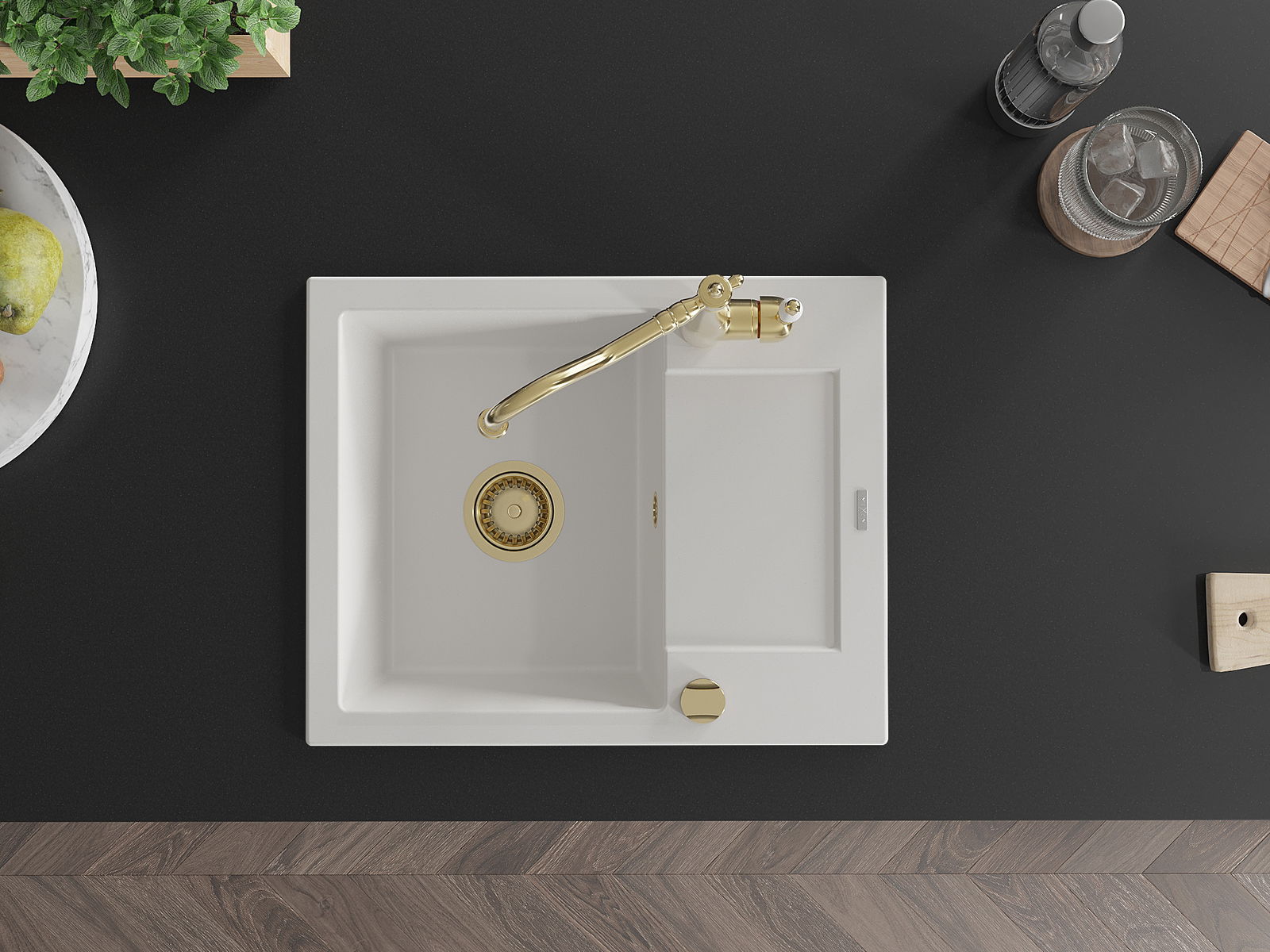 Mexen Enzo évier de cuisine en granit 1 bac avec égouttoir et robinet de cuisine Carla, blanc - 6506-20-670700-50