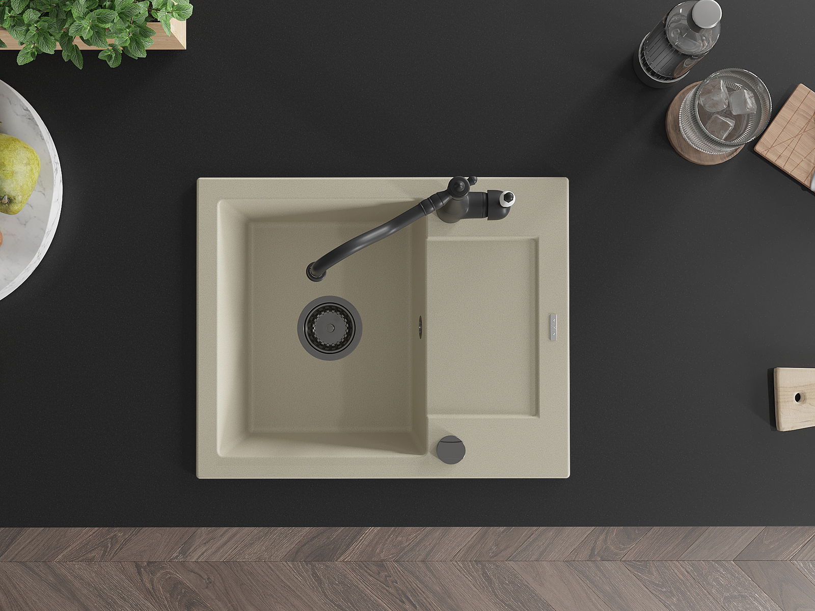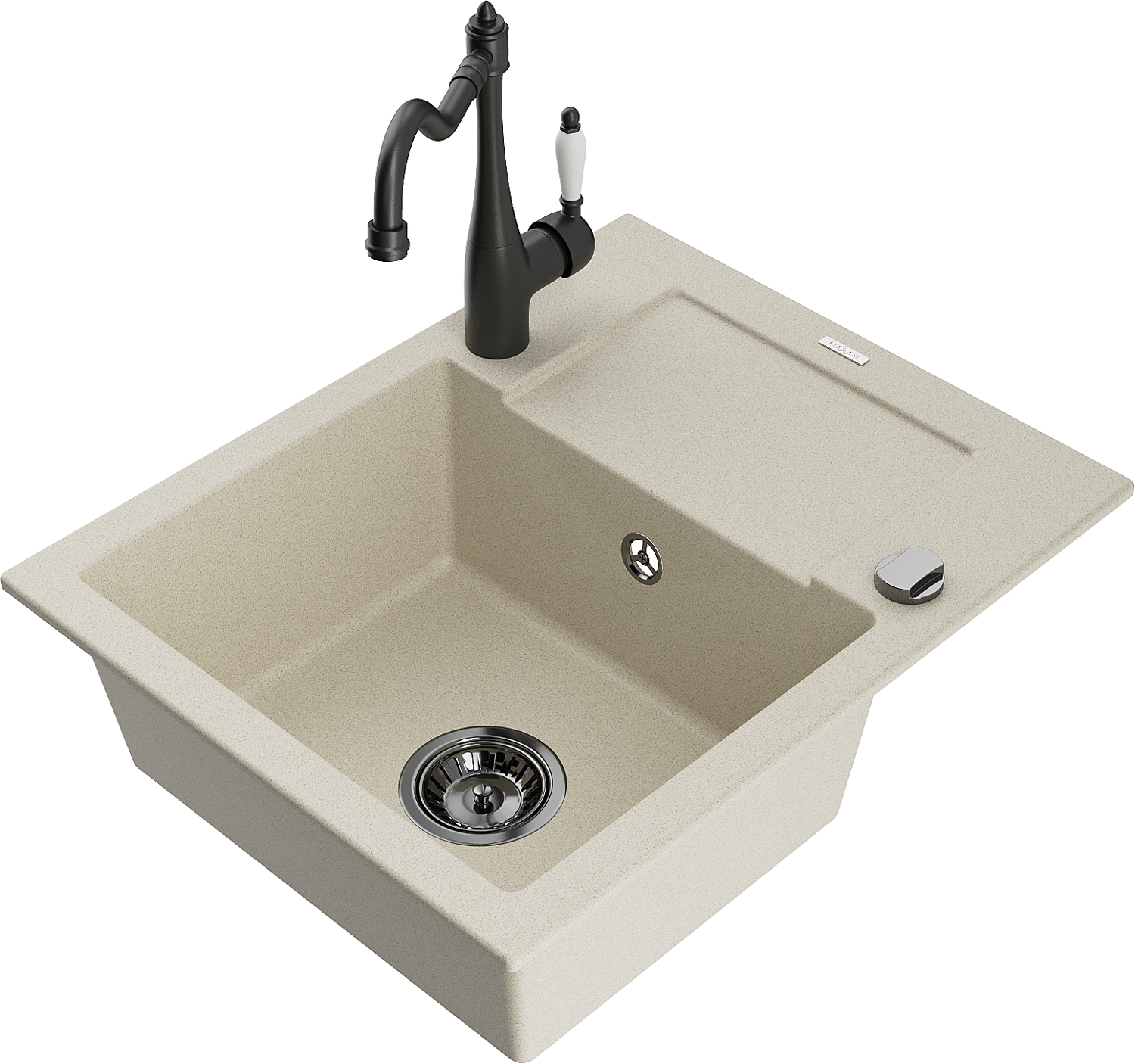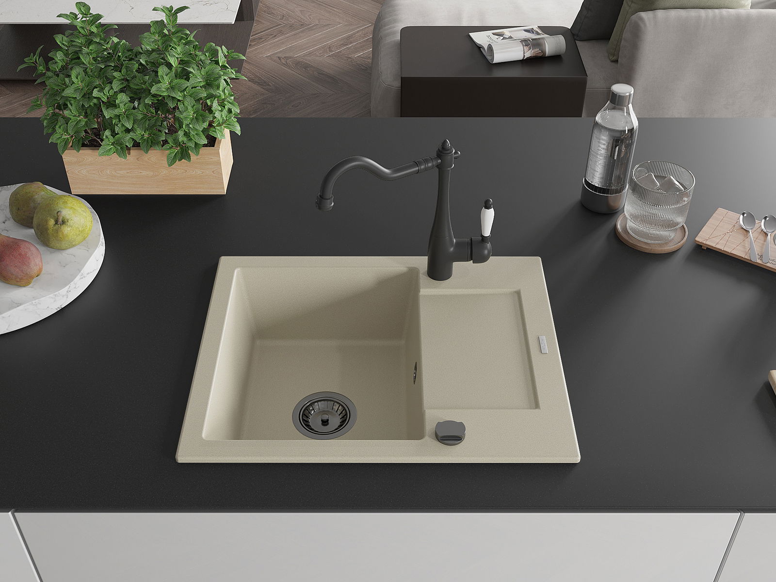 Mexen Enzo évier en granit à 1 bac avec égouttoir et robinet de cuisine Carla, beige - 6506-69-670700-70