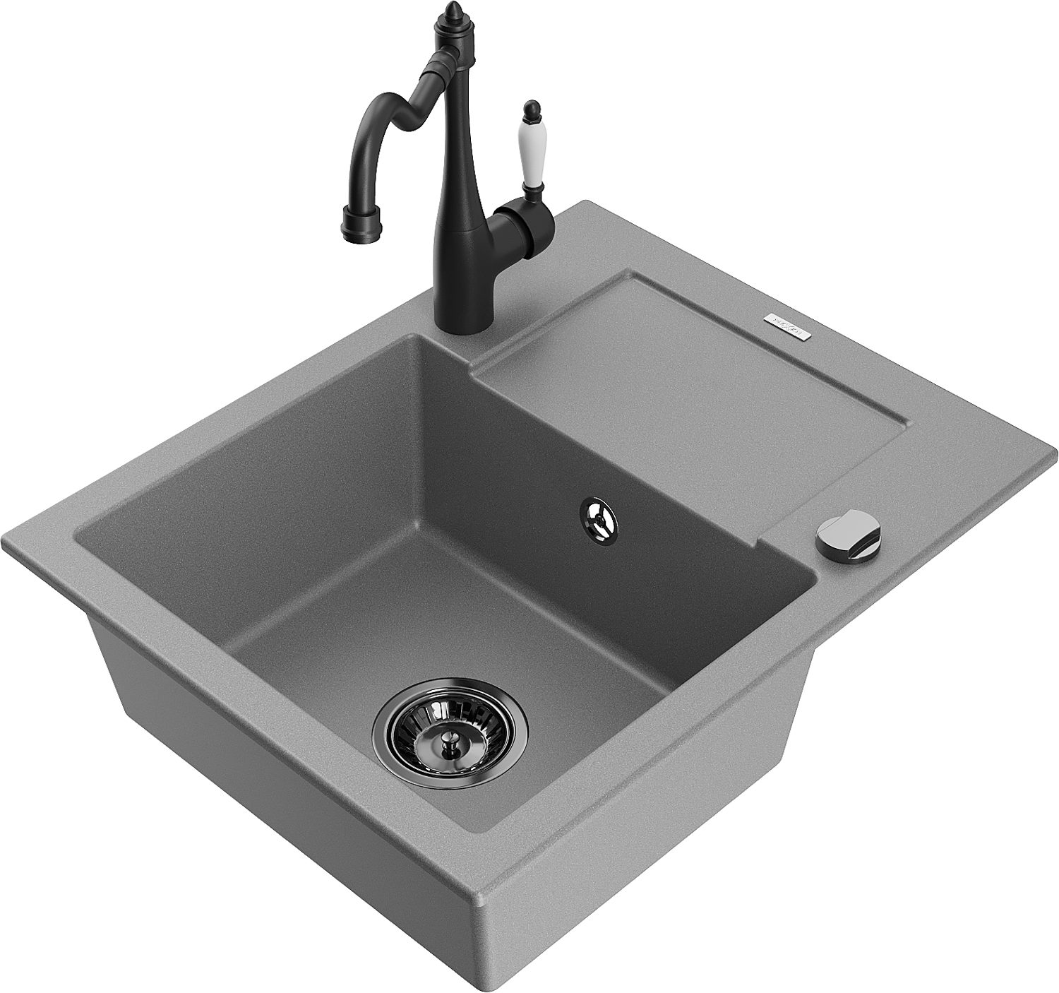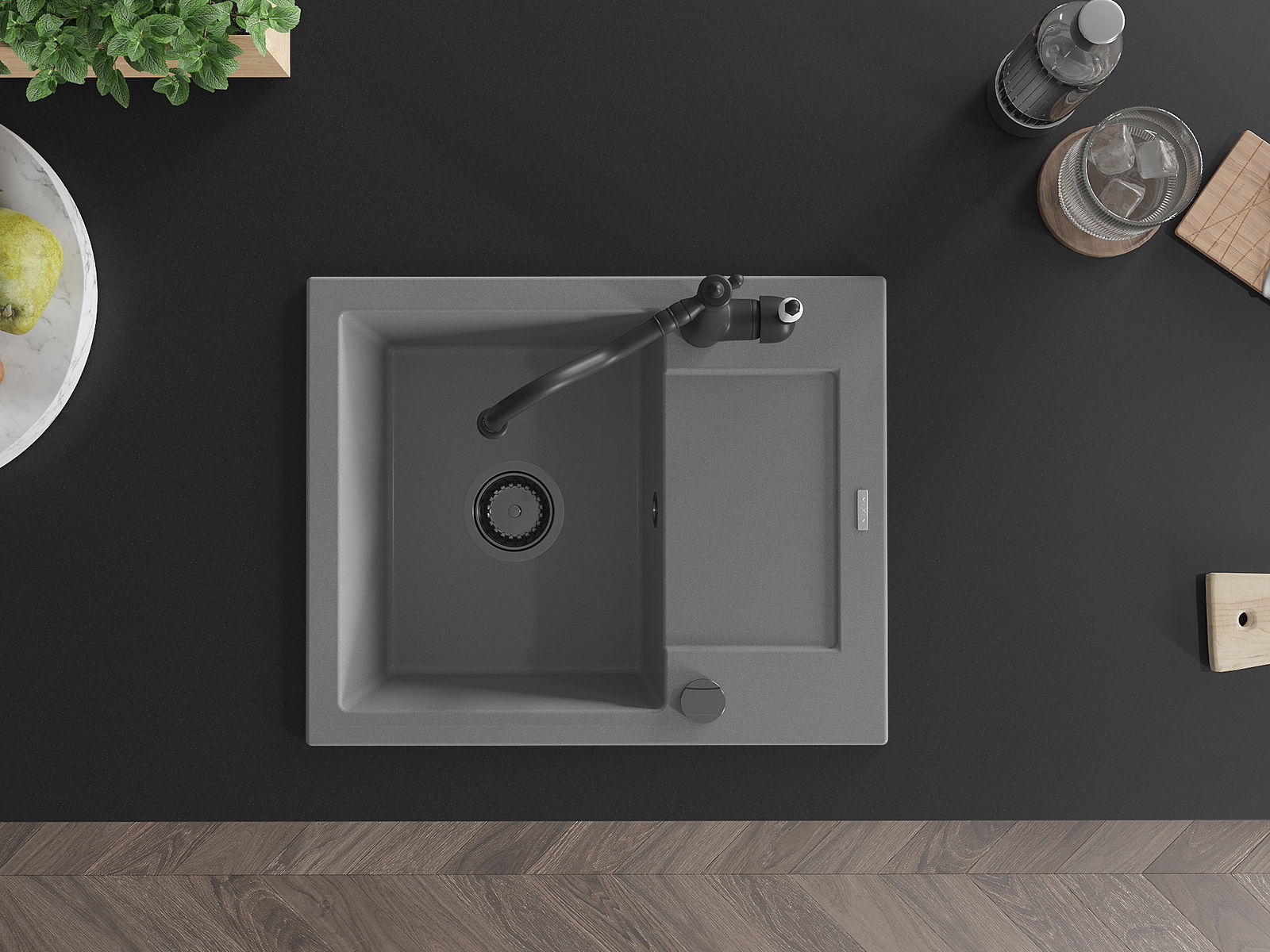 Mexen Enzo évier en granit 1 bac avec égouttoir et robinet de cuisine Carla, gris - 6506-71-670700-70-B