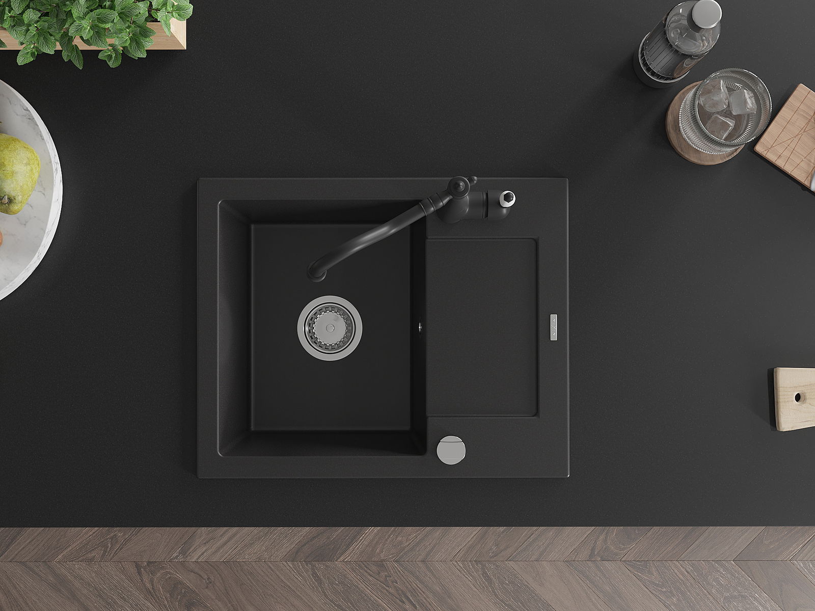 Mexen Enzo évier en granit 1 bac avec égouttoir et robinet de cuisine Carla, noir - 6506-77-670700-70