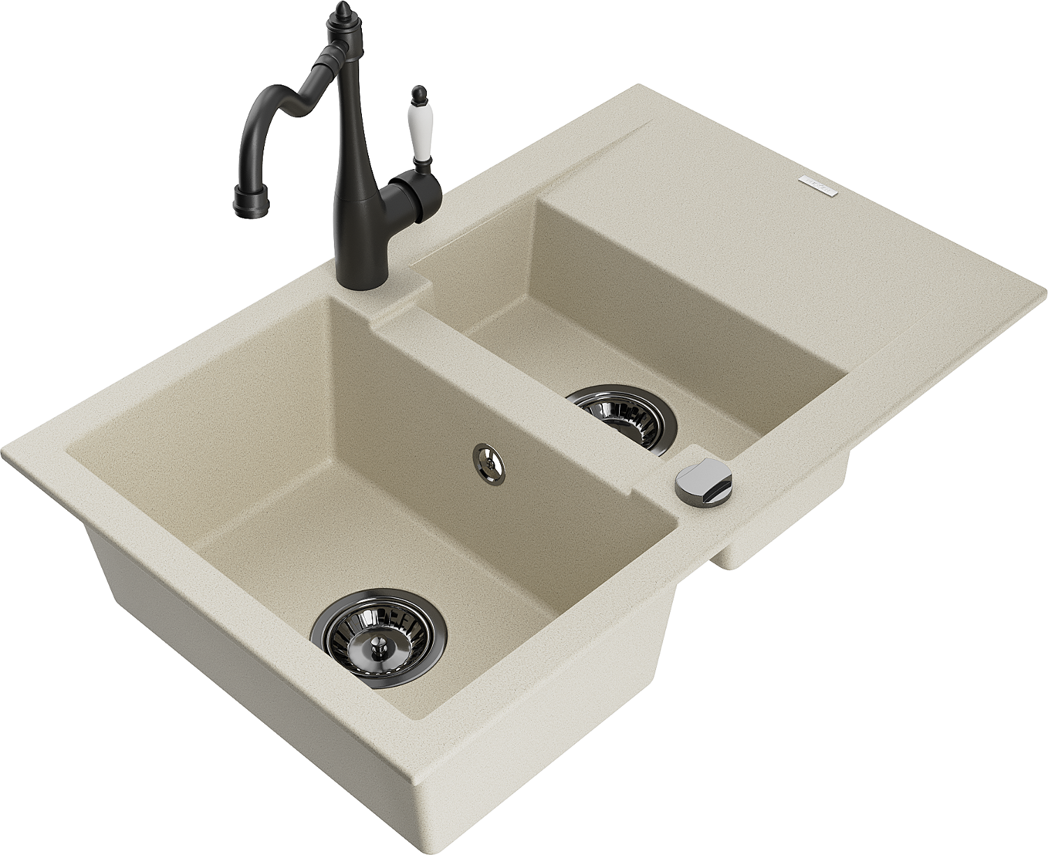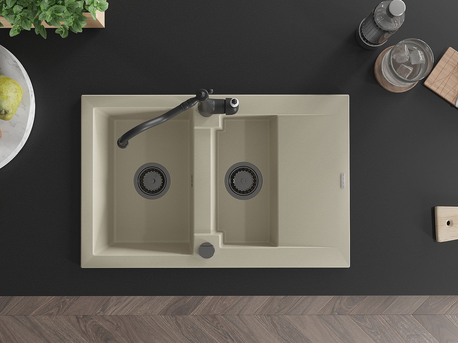 Mexen Gaspar évier en granit 1,5 cuves avec égouttoir et robinet de cuisine Carla, beige - 6507-69-670700-70