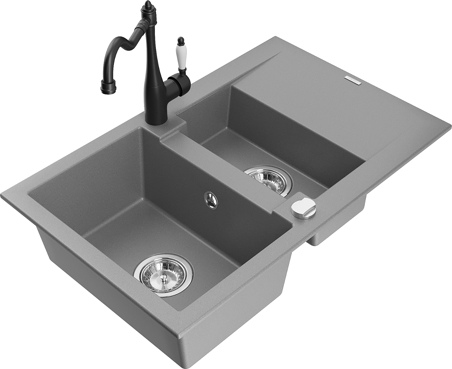 Mexen Gaspar évier en granit 1,5 bac avec égouttoir et robinet de cuisine Carla, gris - 6507-71-670700-70