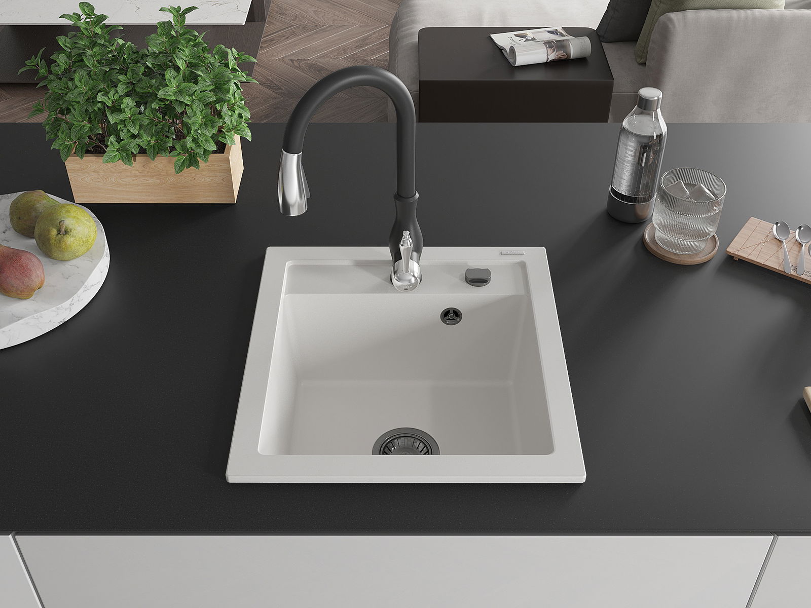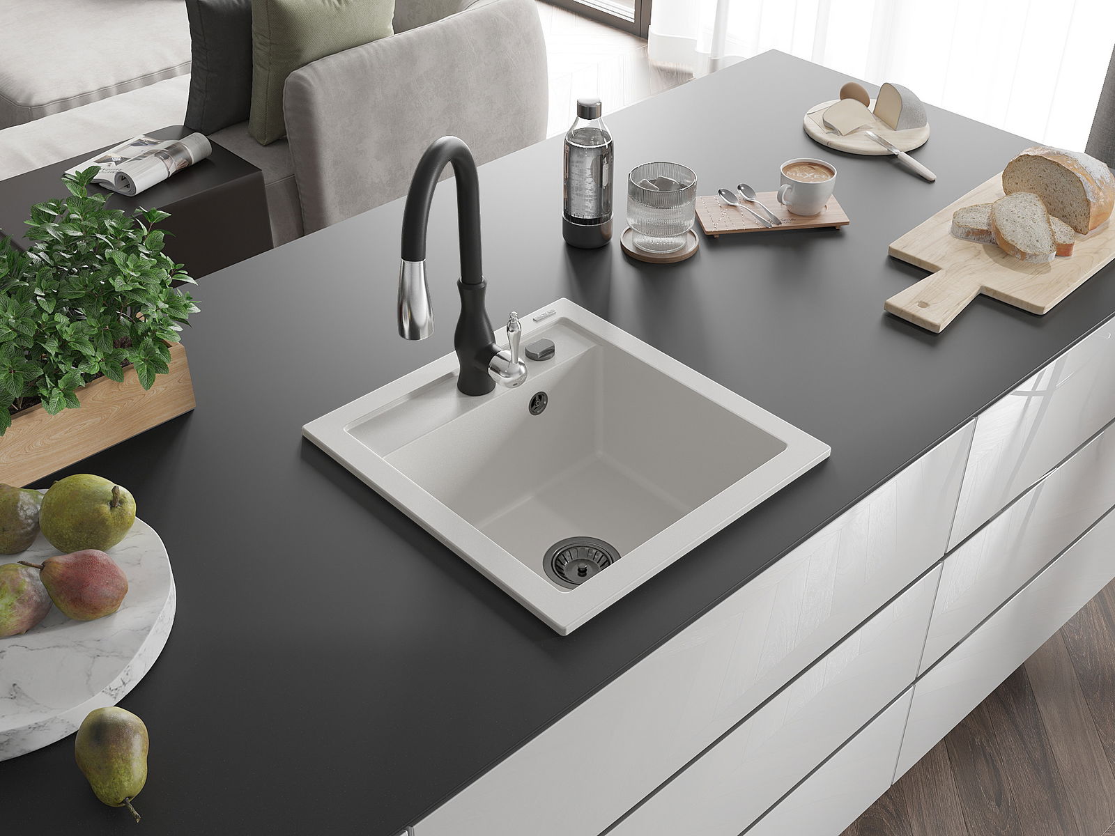 L'évier est fabriqué en granit de haute qualité. Il constitue un complément élégant et surtout pratique pour toute cuisine, quel que soit son style. La qualité et la durabilité du granit garantissent de nombreuses années d'utilisation.