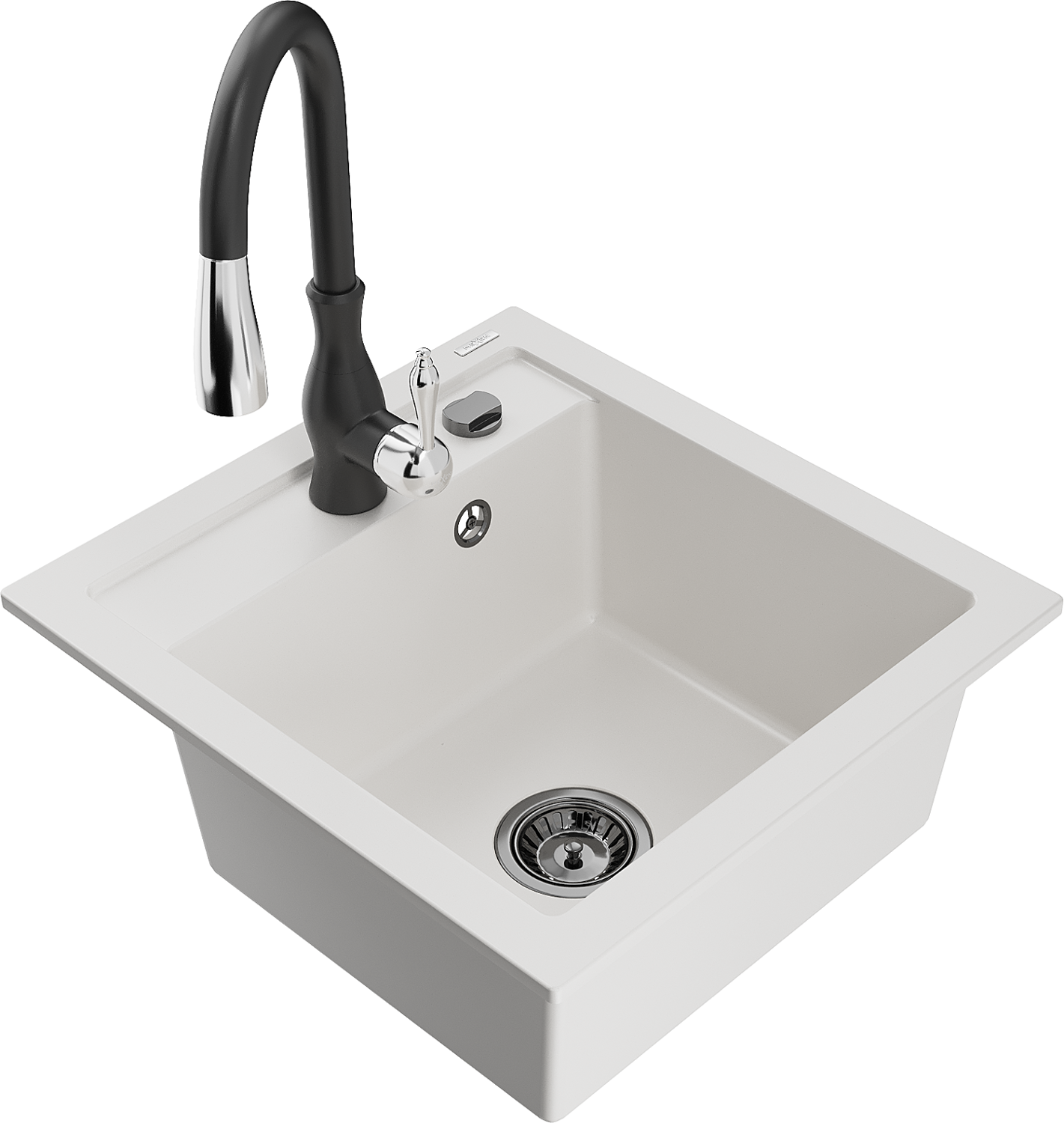 Mexen Vito évier en granit 1 bac avec robinet de cuisine Savita, blanc - 6503-20-672601-70