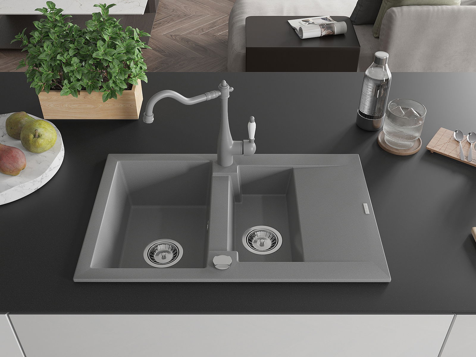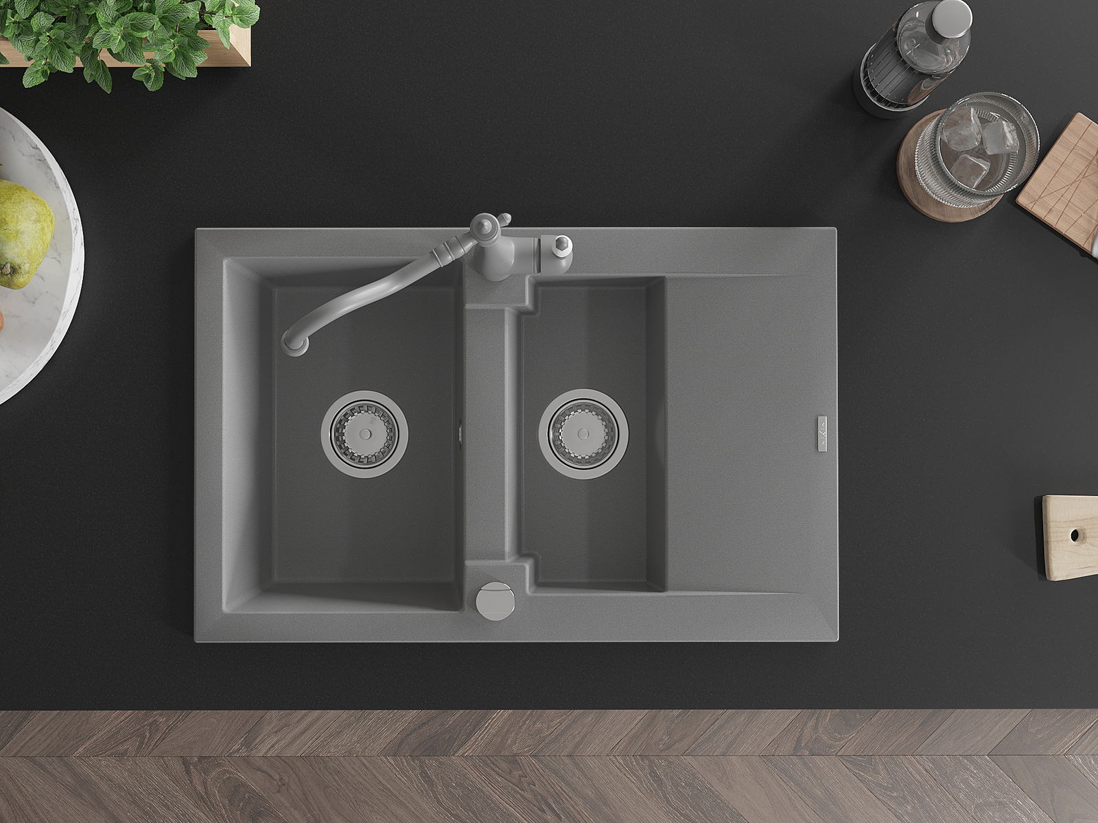 La surface de l'évier est très bien trempée et se distingue par une résistance exceptionnelle aux dommages mécaniques et aux rayures. Ce matériau durable vous permettra de profiter de son bel aspect pendant de nombreuses années.