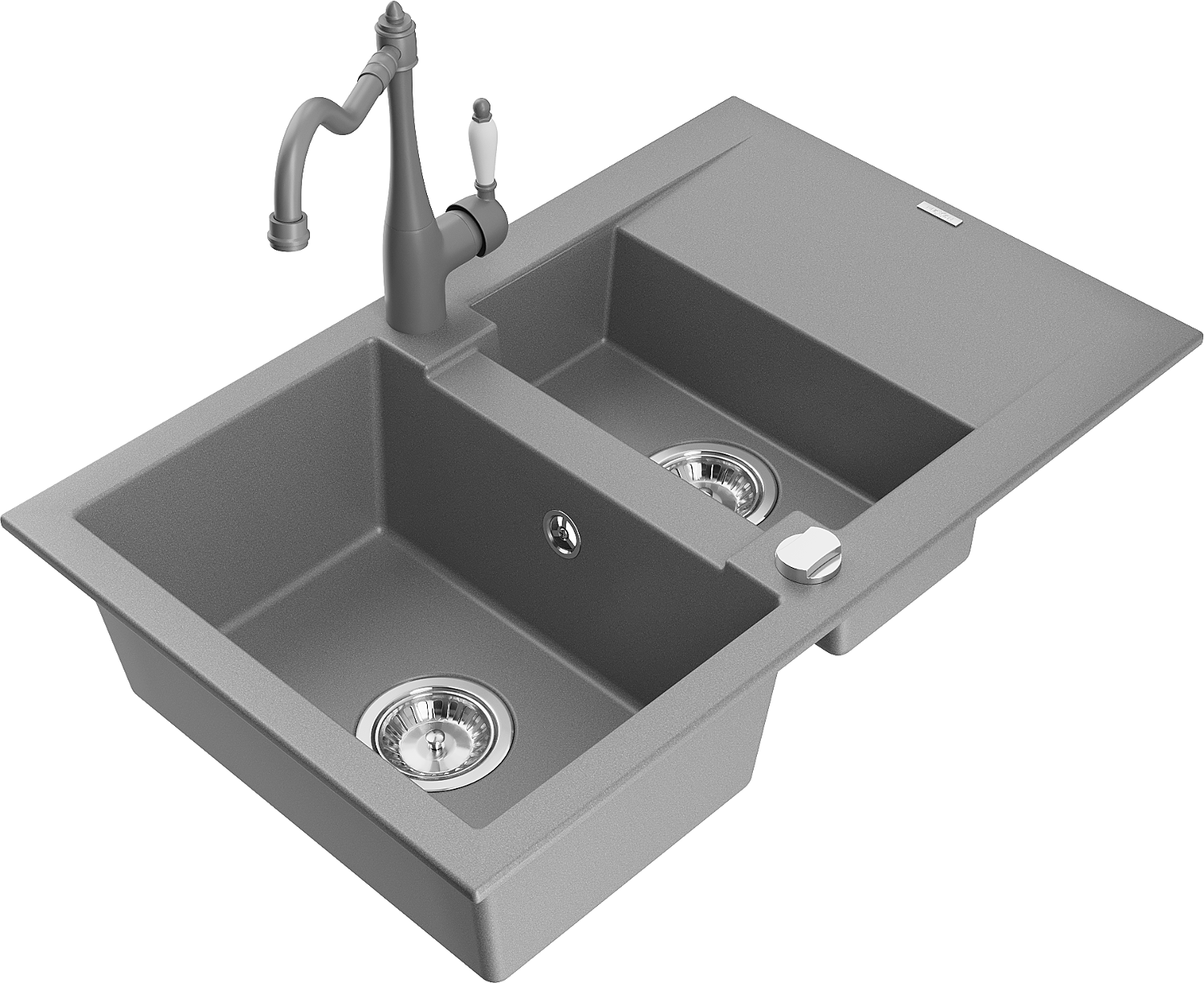 Mexen Gaspar évier en granit 1,5 bac avec égouttoir et mitigeur de cuisine Carla, gris - 6507-71-670700-71