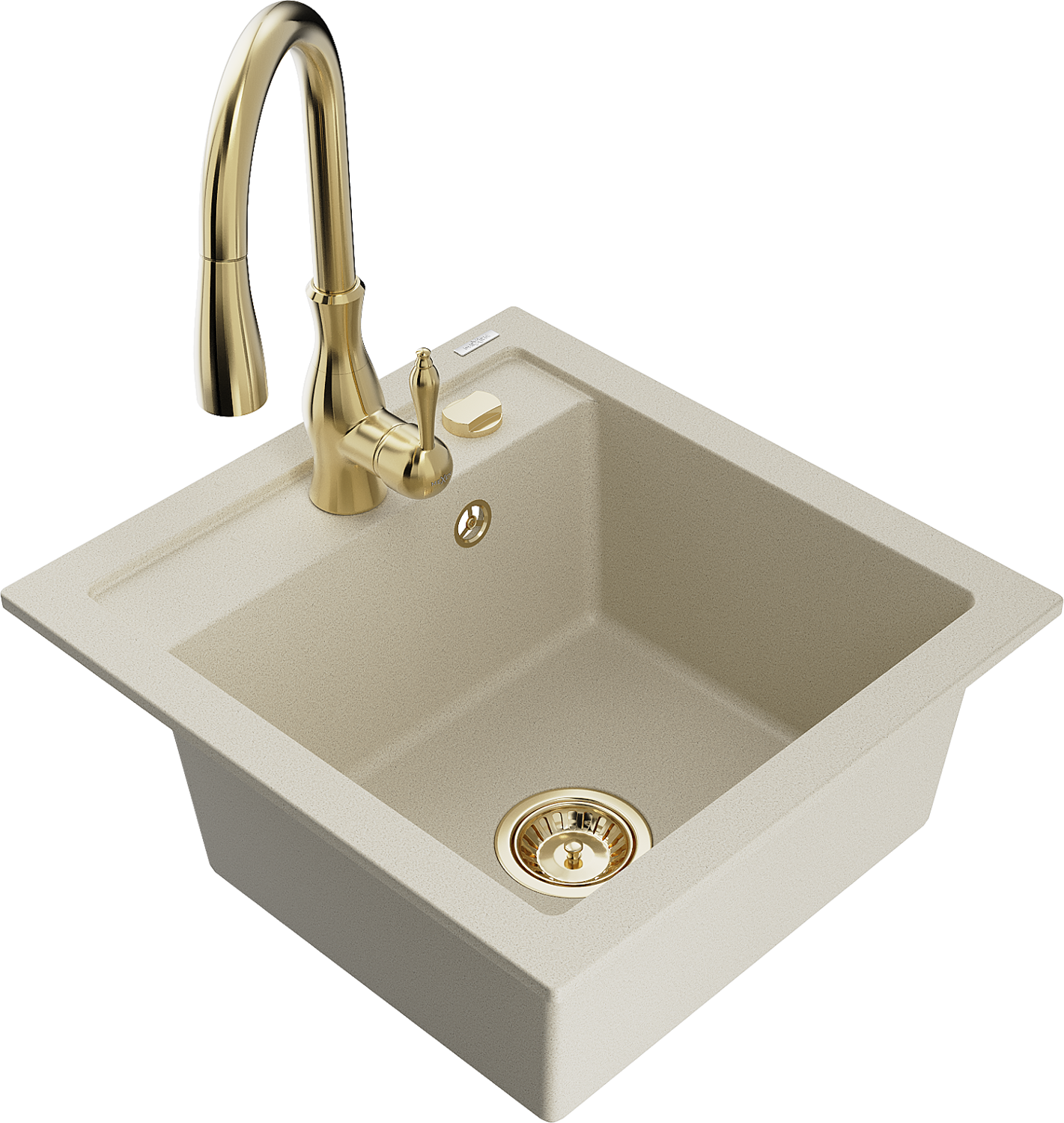 Mexen Vito évier en granite 1 bac avec robinet de cuisine Savita, beige - 6503-69-672601-50