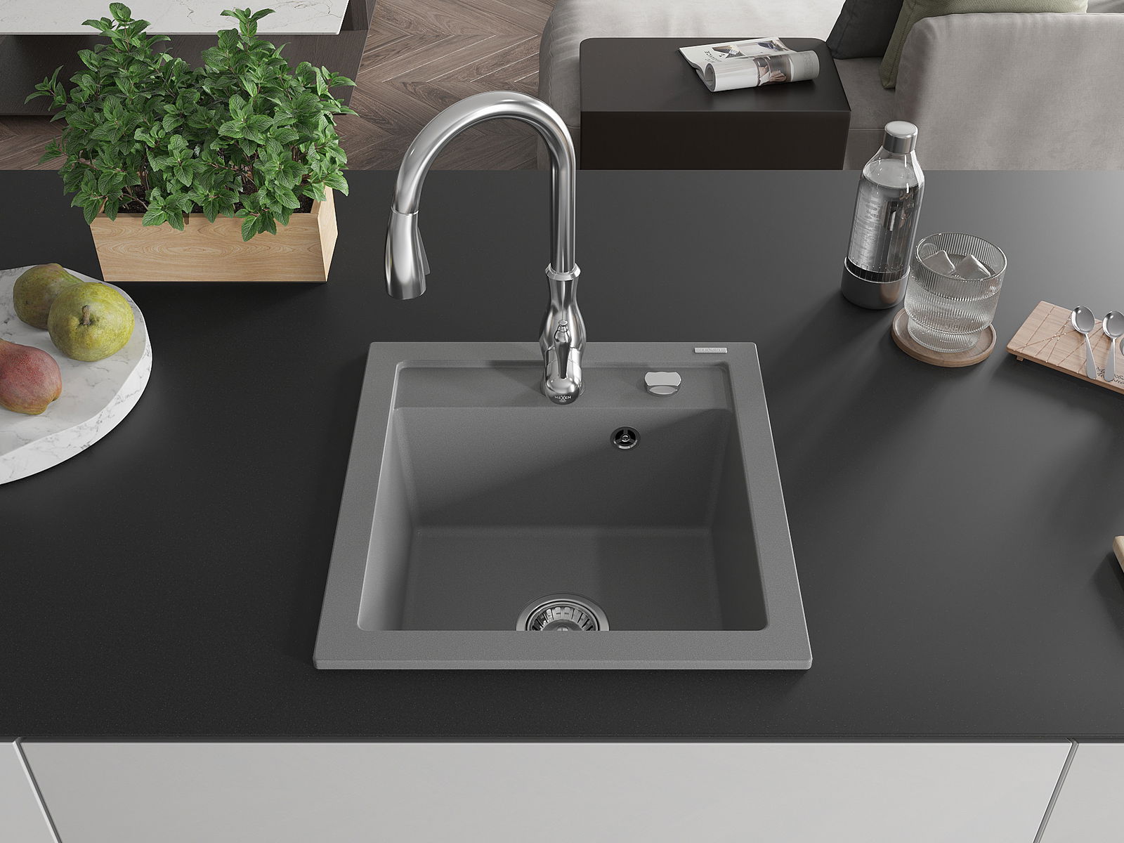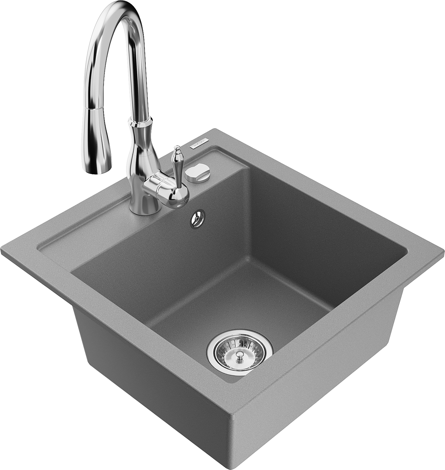 Mexen Vito évier en granit 1 bac avec robinet de cuisine Savita, gris - 6503-71-672601-00