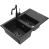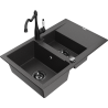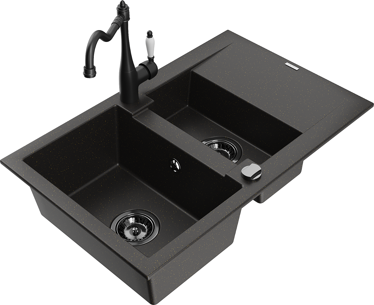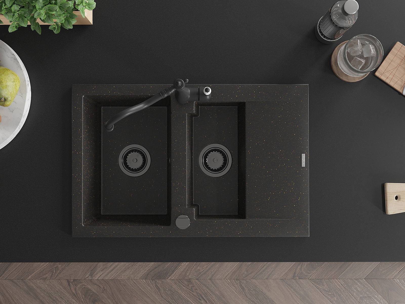 Mexen Gaspar évier en granit 1,5 bac avec égouttoir et robinet de cuisine Carla noir/or métallisé - 6507-75-670700-70-B