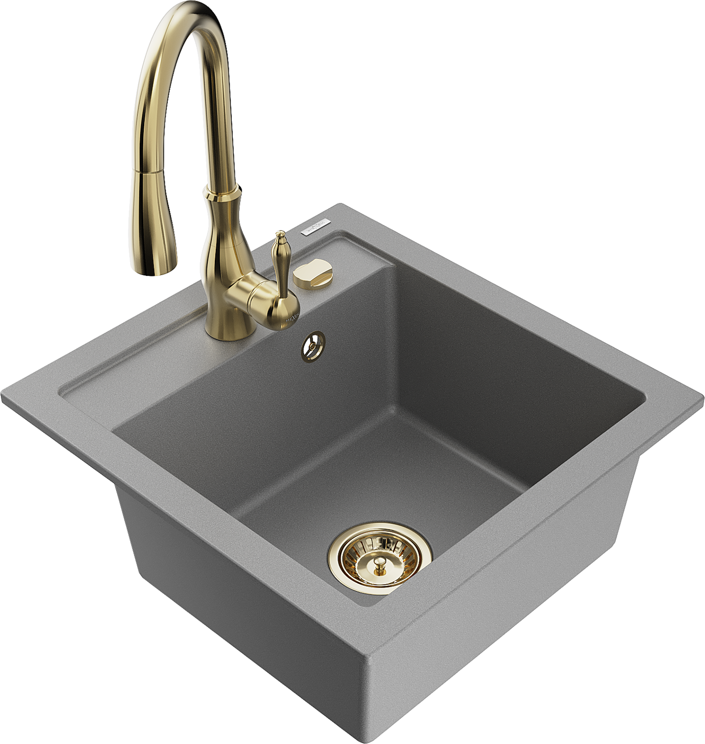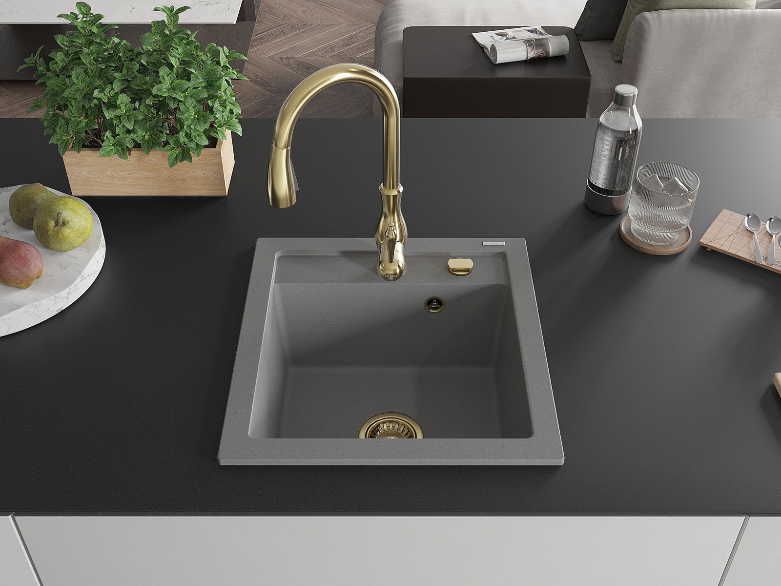 Mexen Vito évier en granit 1 bac avec robinet de cuisine Savita, gris - 6503-71-672601-50