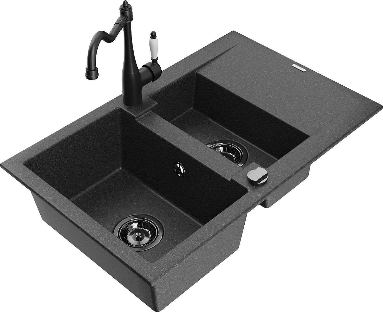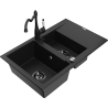 Mexen Gaspar évier de cuisine en granit 1,5 bac avec égouttoir et robinet de cuisine Carla, noir moucheté - 6507-76-670700-70-B