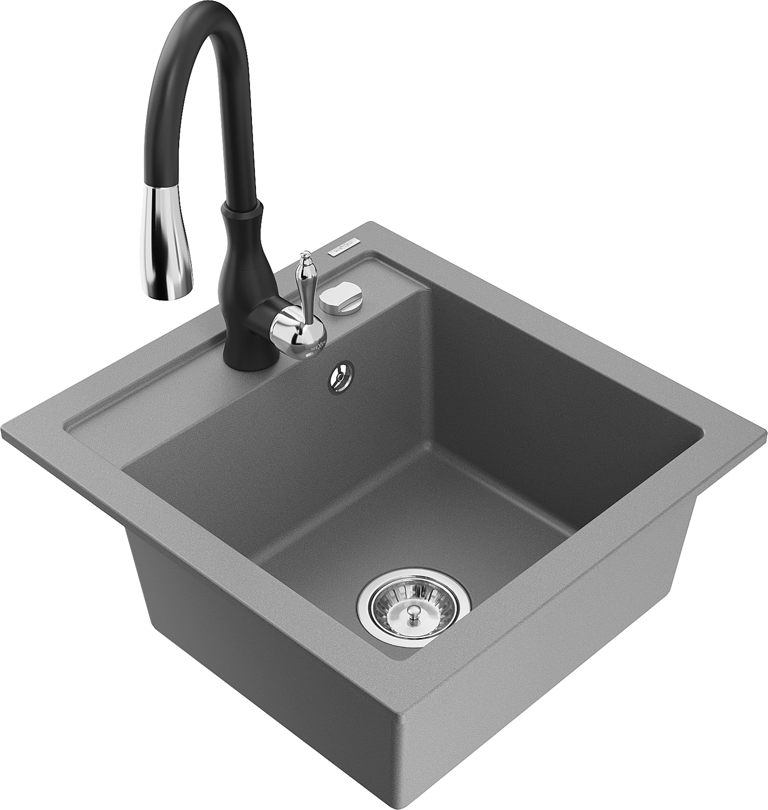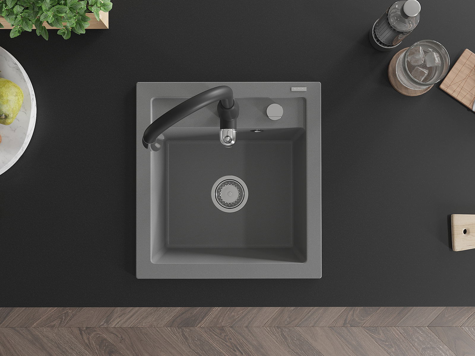 Mexen Vito évier en granit 1 bac avec robinet de cuisine Savita, gris - 6503-71-672601-70