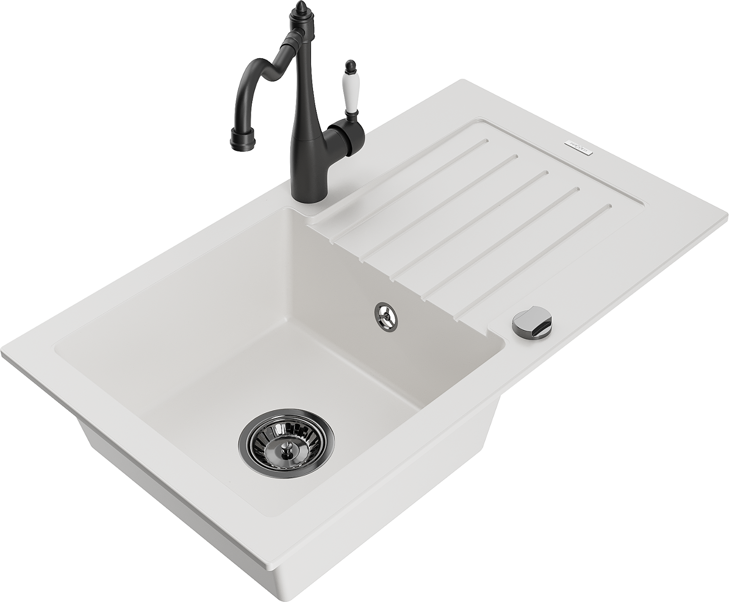 Mexen Pablo évier en granit 1 bac avec égouttoir et robinet de cuisine Carla, blanc - 6510-20-670700-70