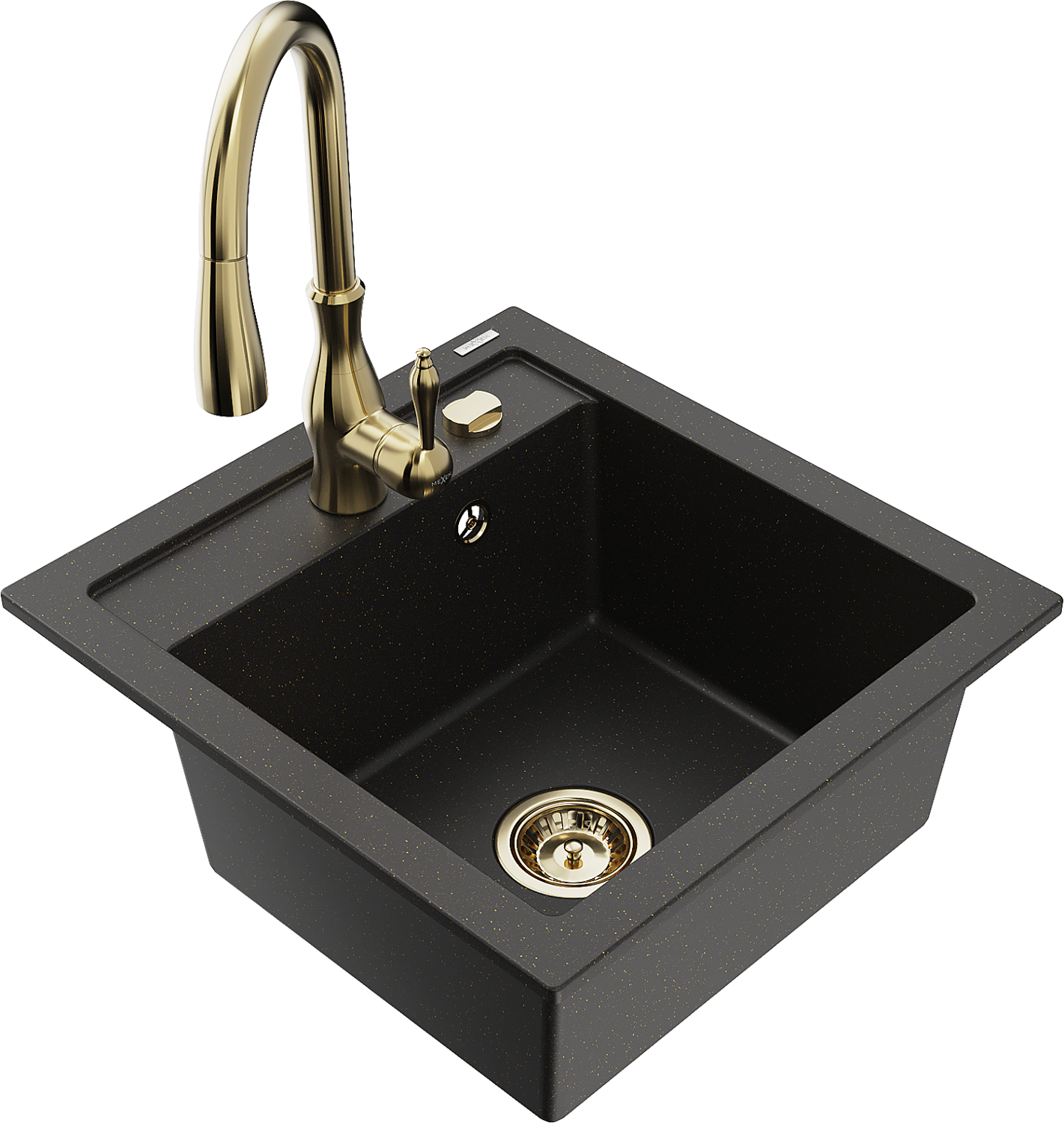 Mexen Vito évier en granit 1 bac avec robinet de cuisine Savita, noir/doré métallisé - 6503-75-672601-50