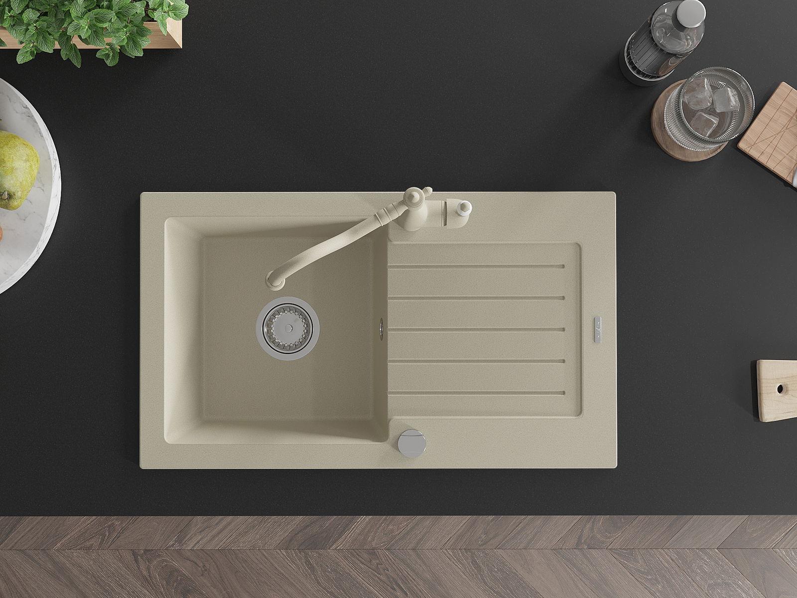 L'évier est fabriqué en granit de haute qualité. Il constitue un complément élégant et surtout pratique pour toute cuisine, quel que soit son style. La qualité et la durabilité du granit garantissent de nombreuses années d'utilisation.
